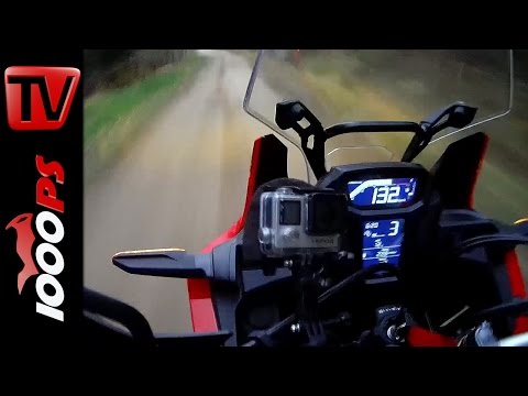 Für hervorragende Geländeeigenschaften sprechen alleine schon das mit 21 Zoll recht große Vorderrad sowie Federwege, die zwar noch nicht veröffentlicht sind, aber um die 200 Millimeter liegen werden. Dazu kommt eine Bremsanlage vom Feinsten mit 310 Millimeter Doppelscheiben-Vierkolben-Wave-Bremsen vorne und 256 Millimeter Einscheiben-Doppelkolben-Bremsen hinten. Die zwischen 85 und 87 Zentimeter verstellbare Sitzhöhe sowie die Ergonomie der CRF 1000 L unterstützen eine aufrechte Sitzposition. Damit ist auch der Einsatz für längere Strecken auf der Landstraße oder Autobahn kein Problem. Dafür spricht auch das Tankvolumen, das mit 18,8 Litern Fassungsvermögen für mehr als 400 Kilometer reichen soll.