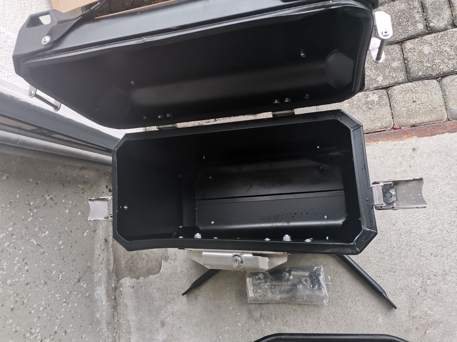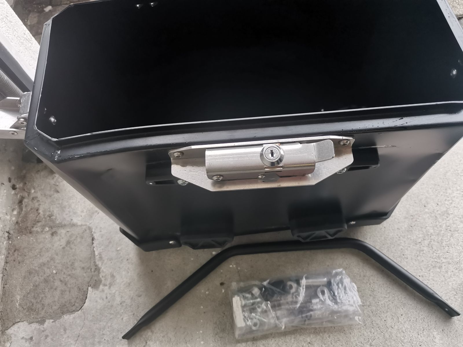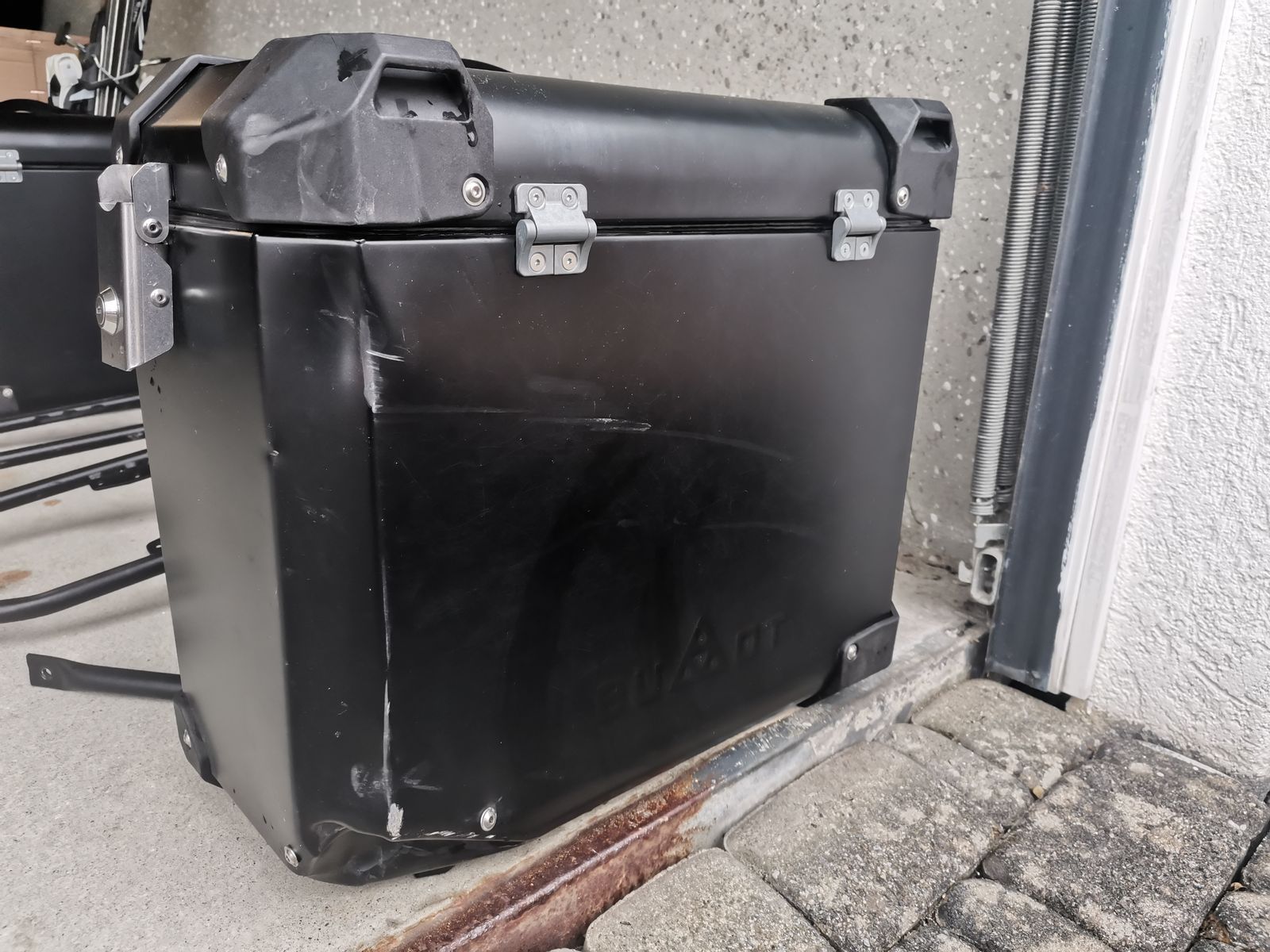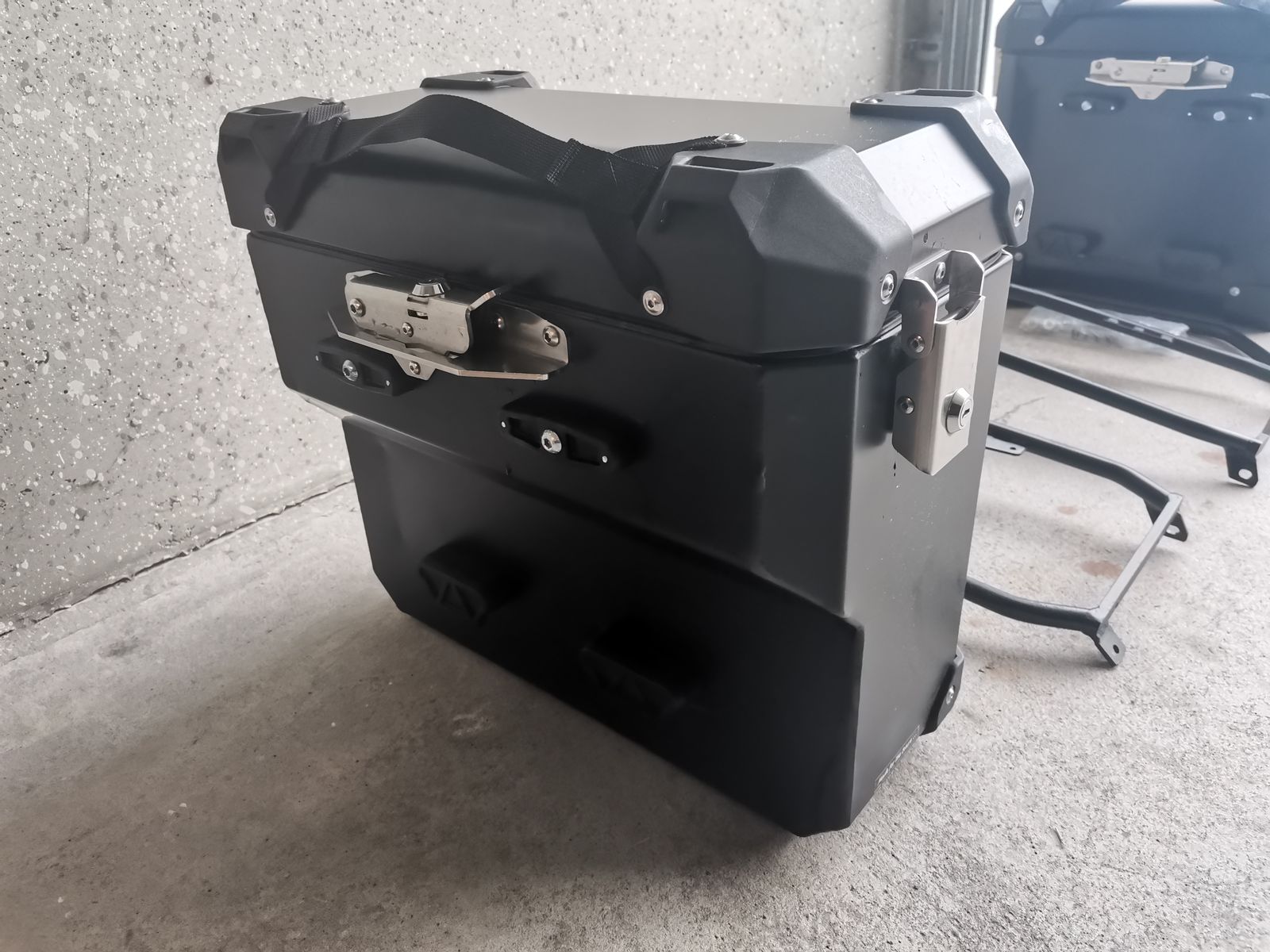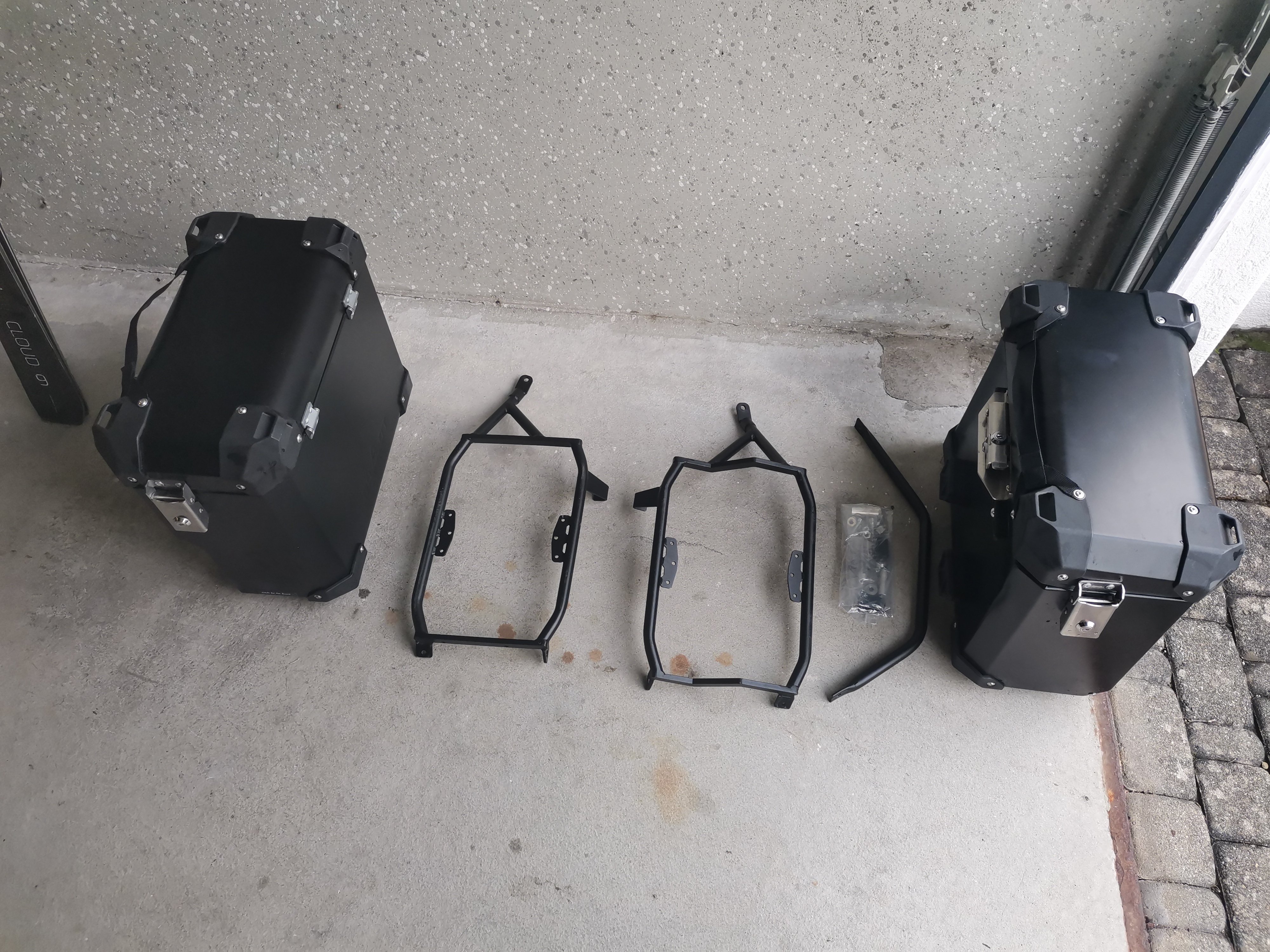 Die Halterung ist vollkommen in Ordnung und hat keinen Schaden erlitten sowie der andere seitenkoffer ist komplett in Ordnung und in einem sehr guten Zustand.
