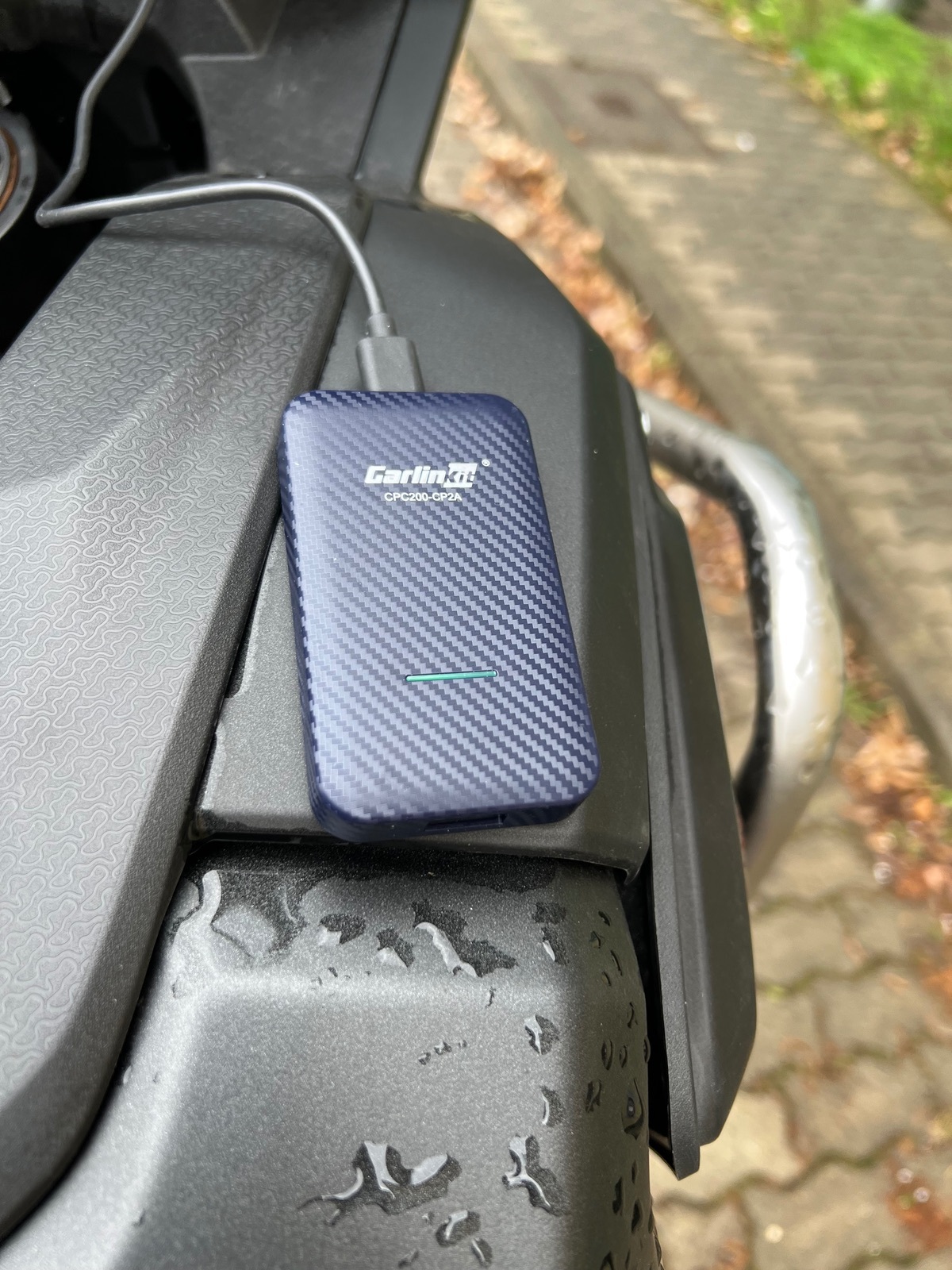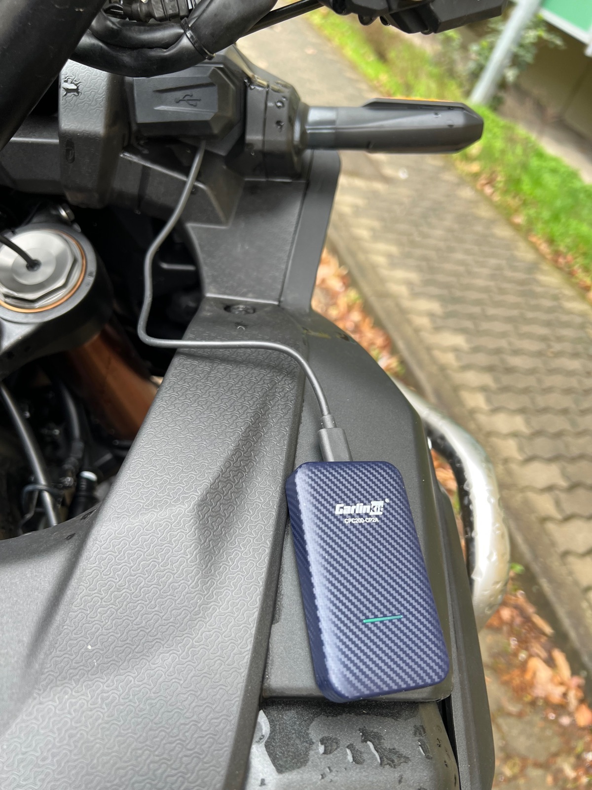 The Missenden Flyer hat das mal an seiner Goldwing probiert, ist allerdings gescheitert. Bei uns kommt ja noch erschwerend hinzu, dass man den Adapter außen am Bike anbringen muss, was die Frage des Wetterschutzes aufwirft.