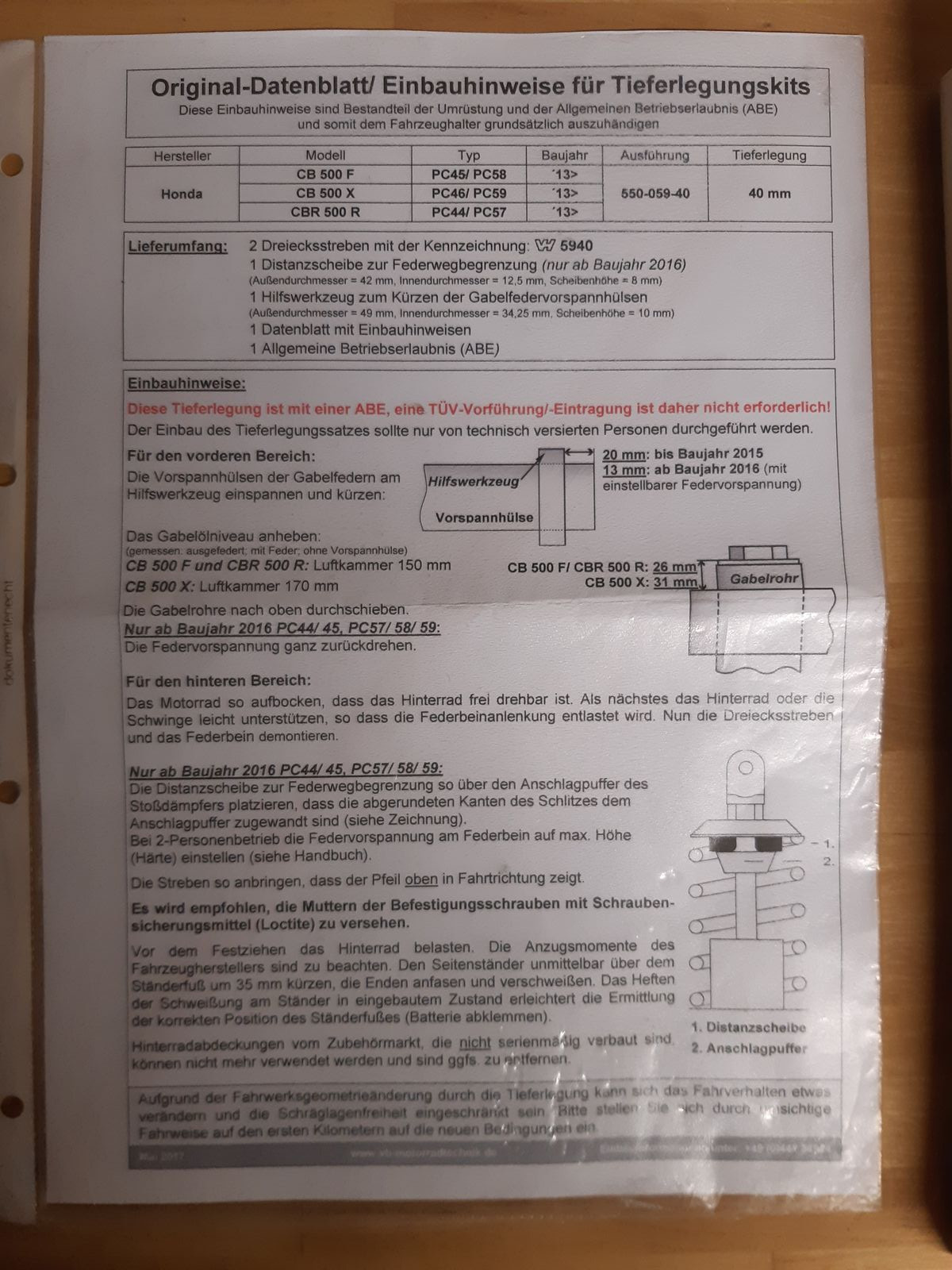 CB500X (PC59) - 40mm Tieferlegungssatz