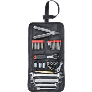 Auf normalen Urlaubsreisen reicht sicher ein anständiger Maul- oder Ringschlüssel für die Achsmutter. Eine ausreichend lange Verlängerung für den Originalschlüssel tut es auch. Der Rest vom Bordwerkzeug taugt für einfache Einstellereien.