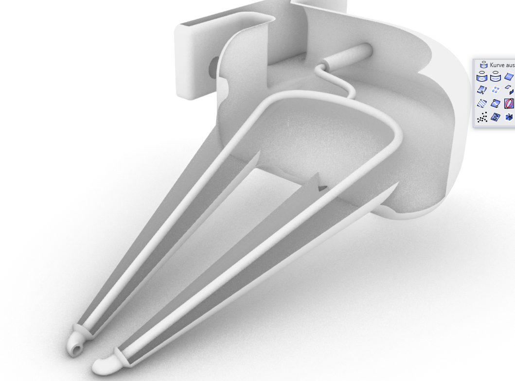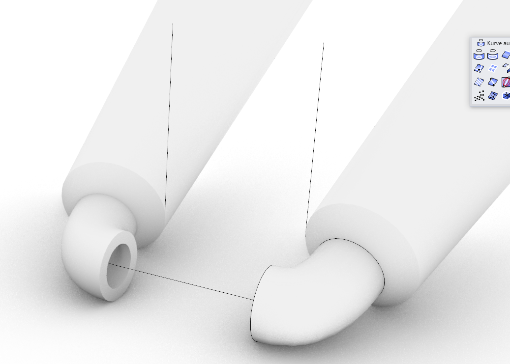 Das PETG wird mit 80% Füllgrad gedruckt. Die beiden Ausläufe sind so fest, dass man sie mit einer Hand nicht kaputt gedrückt bekommt.
