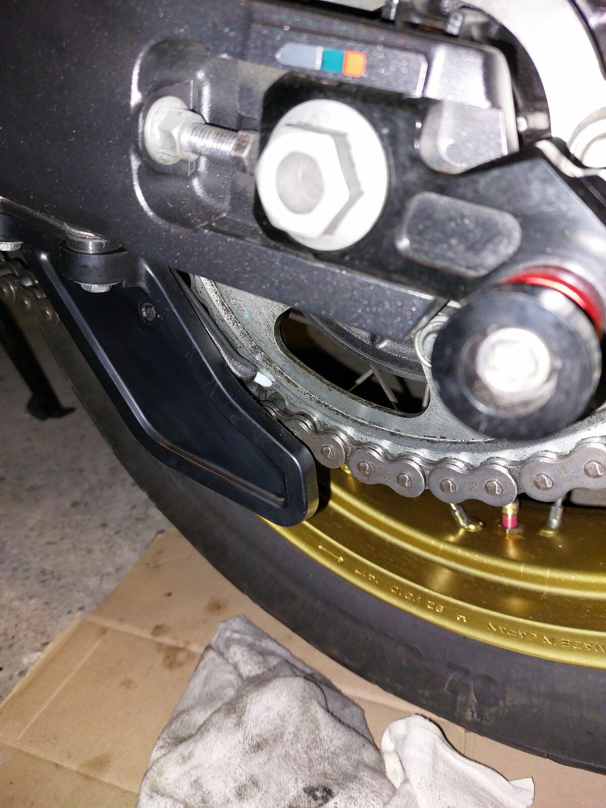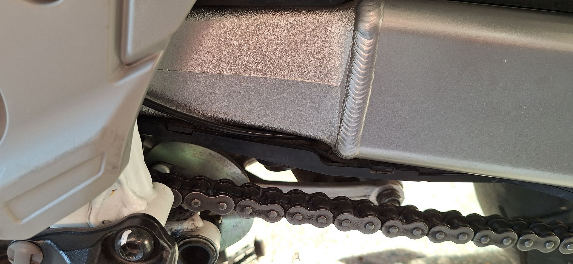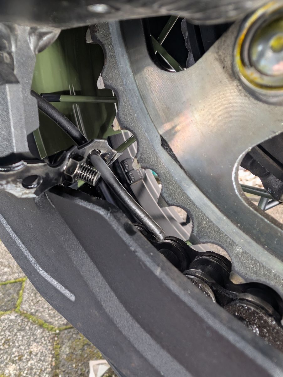 Kabelbinder ist weg. Schlauch läuft jetzt unter dem Kettengleiddingsda hinter die Schwinge.
