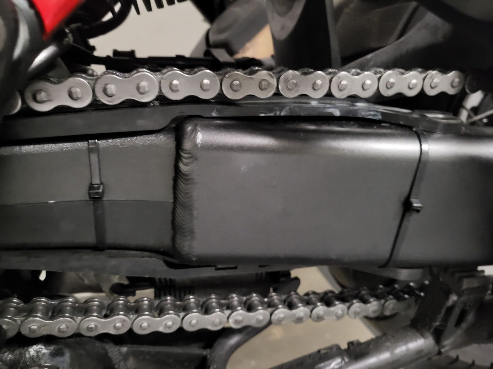 Alles anzeigenKönnte man eigentlich in die Schwinge einige Löcher bohren zum anschrauben von Schlauchhaltern?