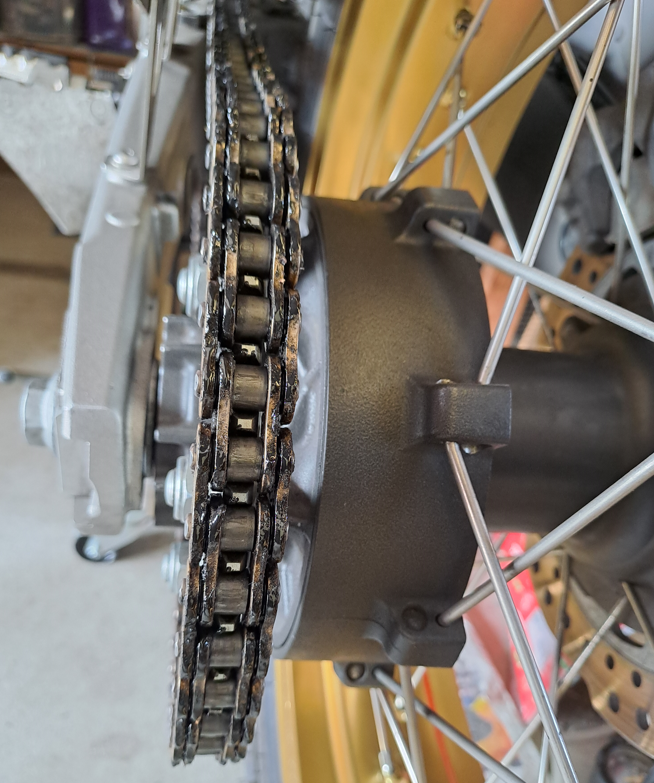 Alle 500 - 900 km fette ich nur innen, auf den Rollen, nach mit Kettenfett.