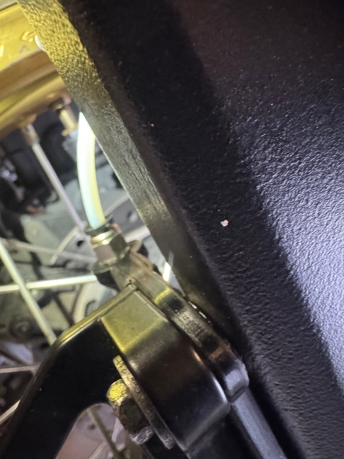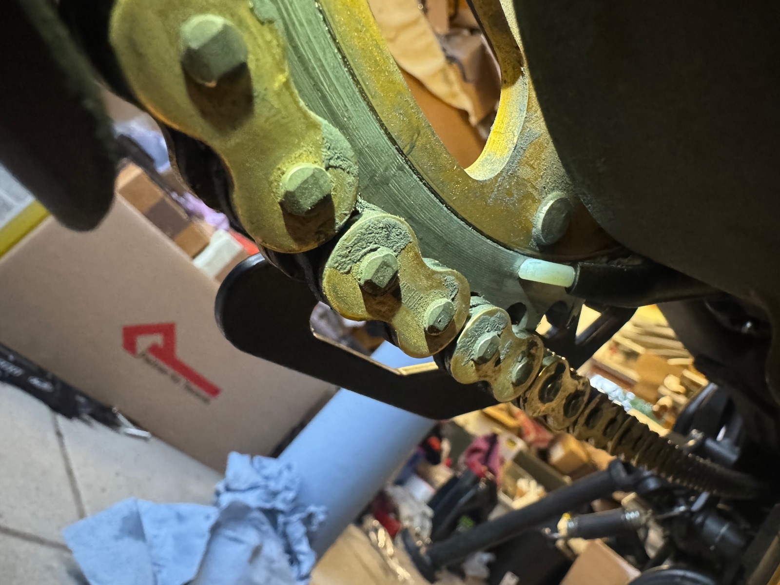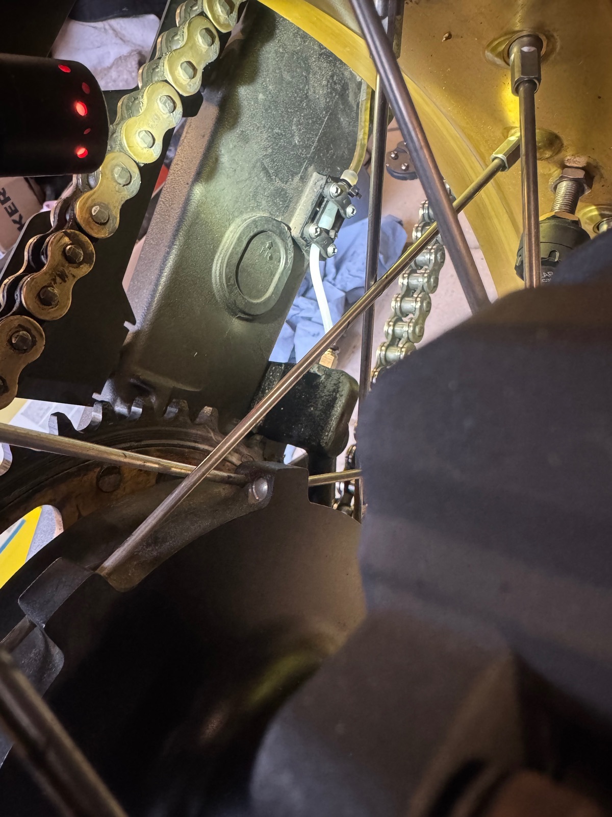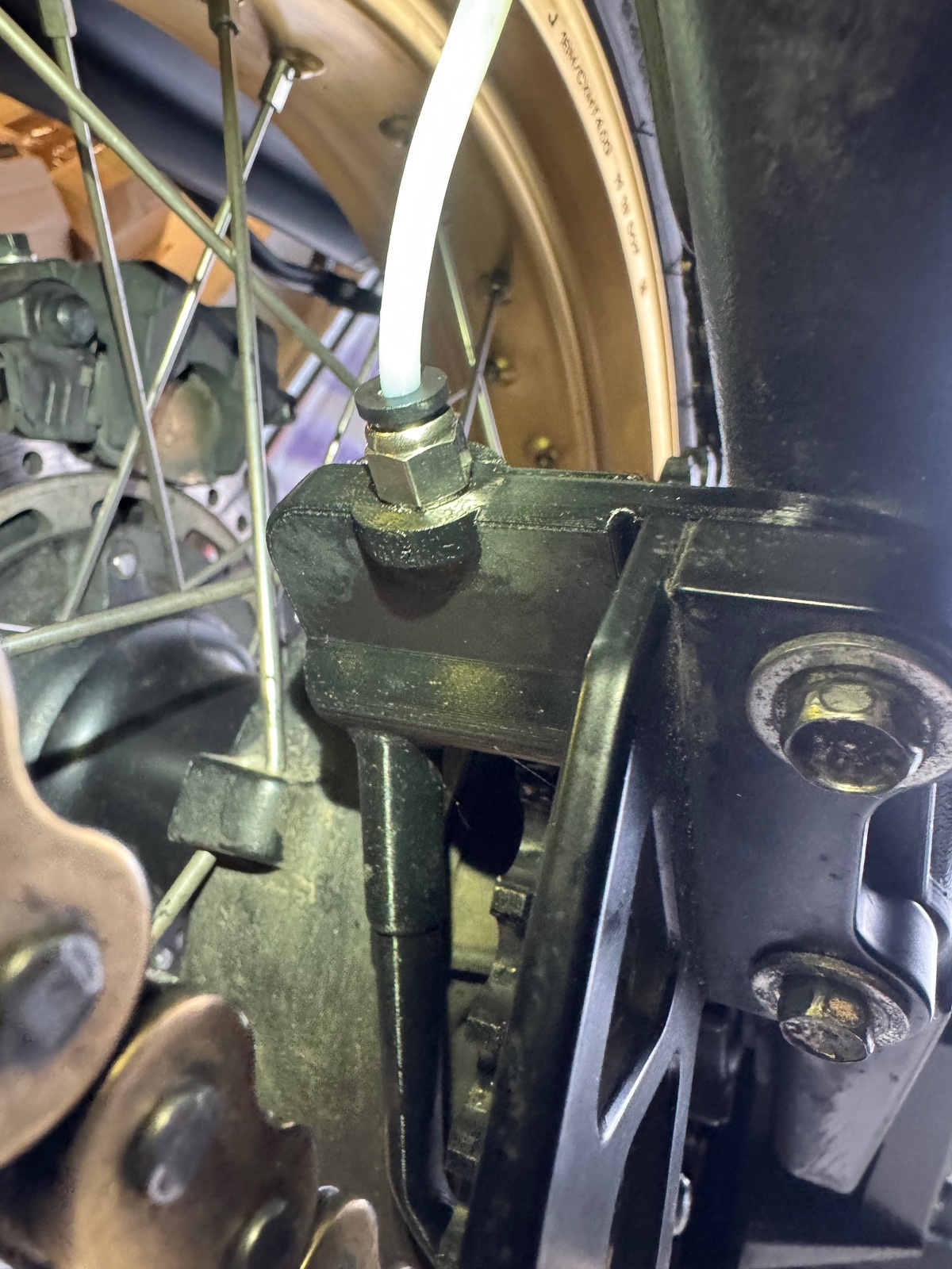 Kabelbinder ist weg. Schlauch läuft jetzt unter dem Kettengleiddingsda hinter die Schwinge.