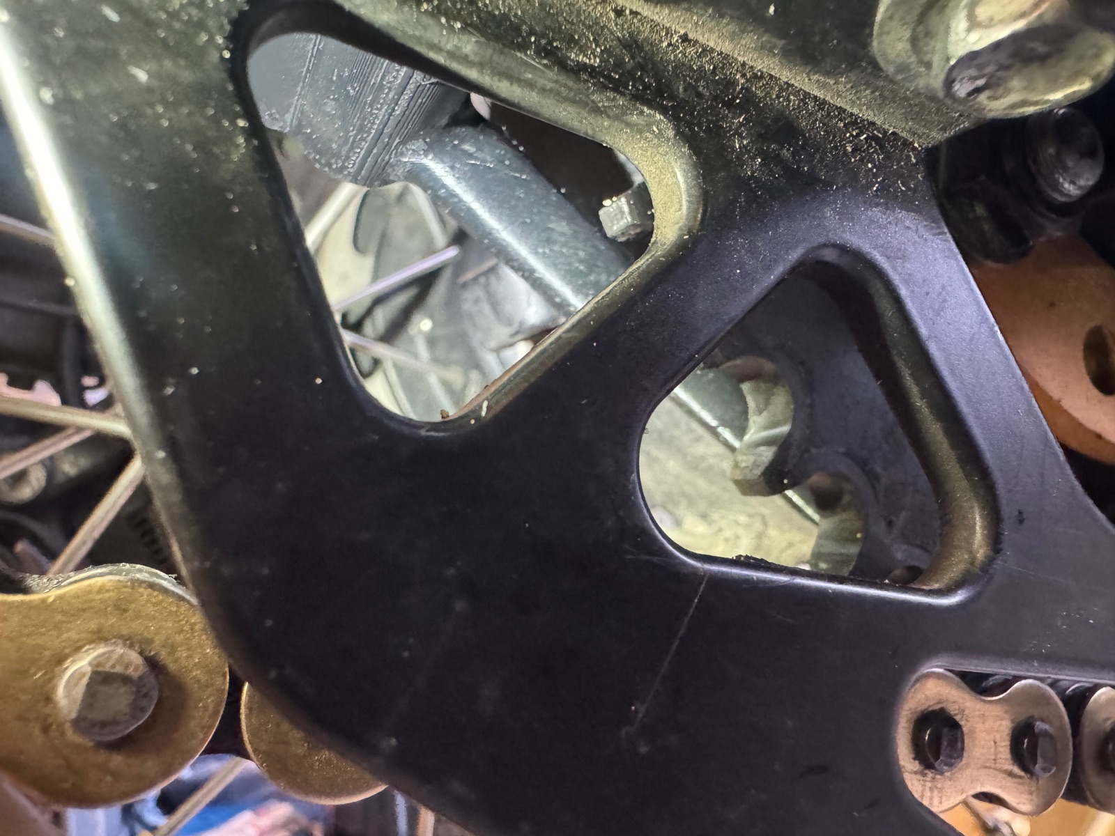 Bist Du sicher, dass die Kette die Düse nicht berühren kann? Nimm mal den Gang raus und drücke die Kette max. aufs Kettenrad auf.