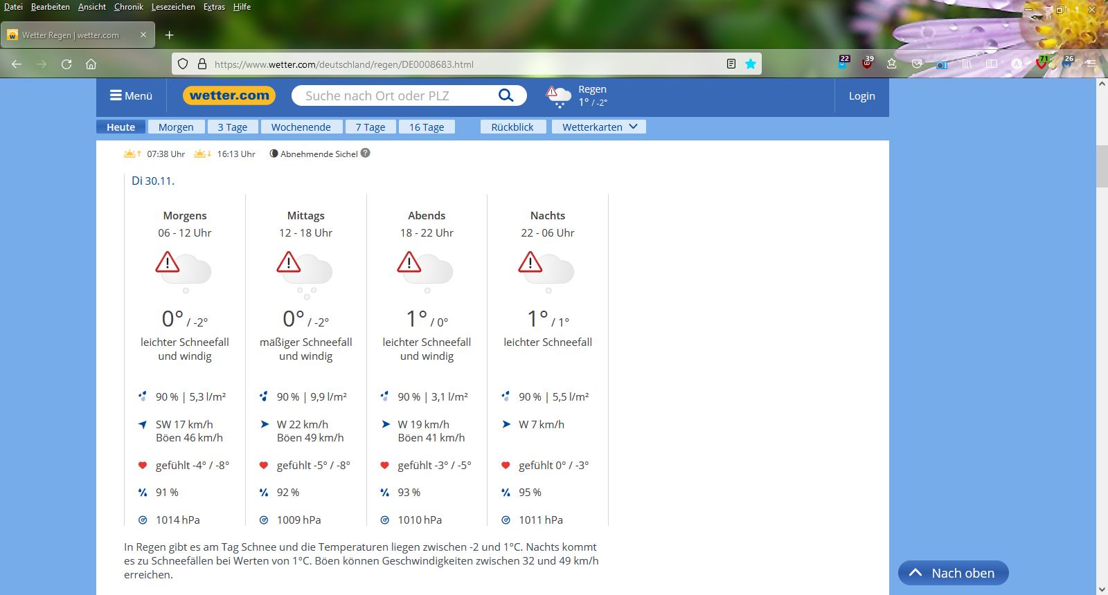 -Durch die Thermo-Regenhose von Louis und eine Thermoboy-Haube von Polo friere ich auf der kurzen Fahrt (ca. 20 Min.) nicht.