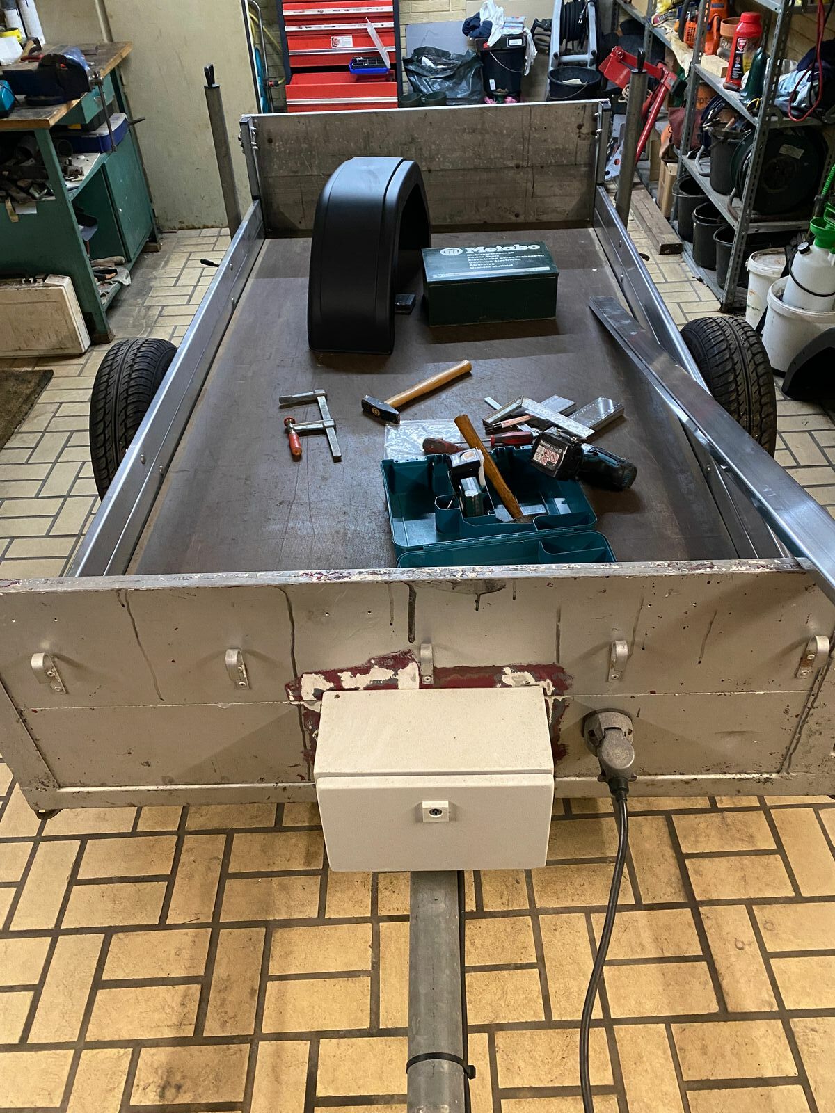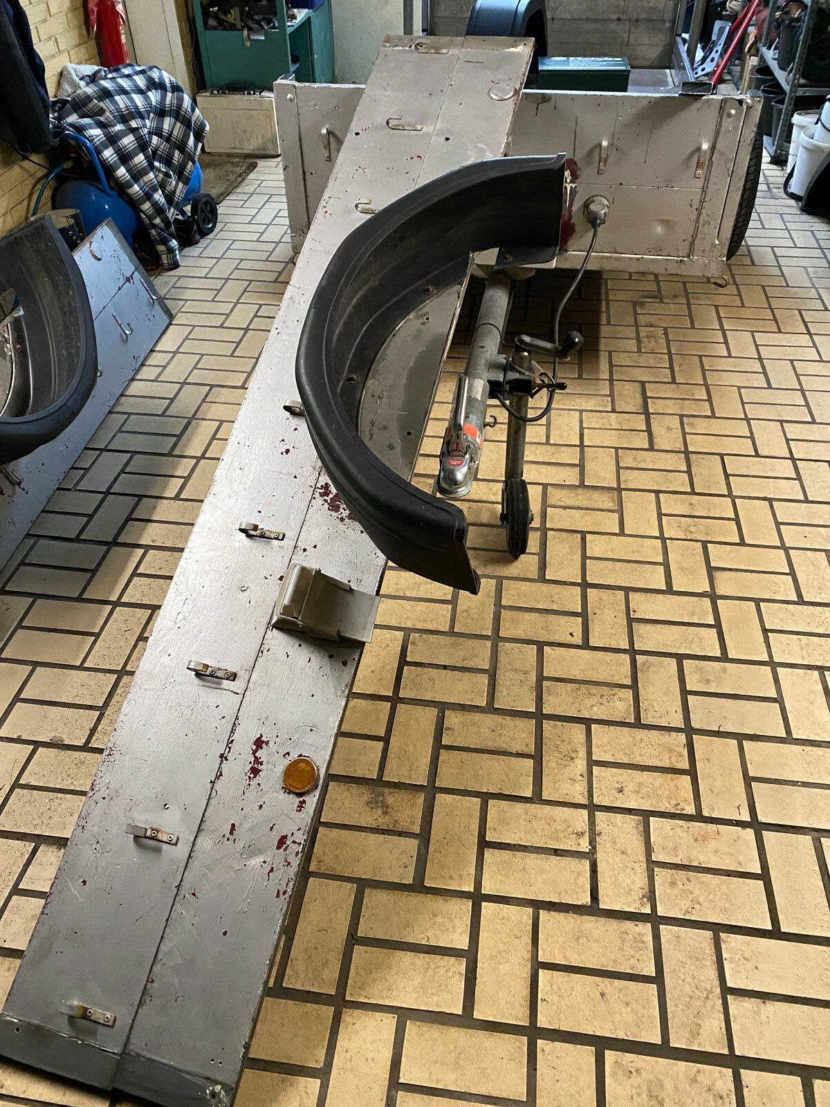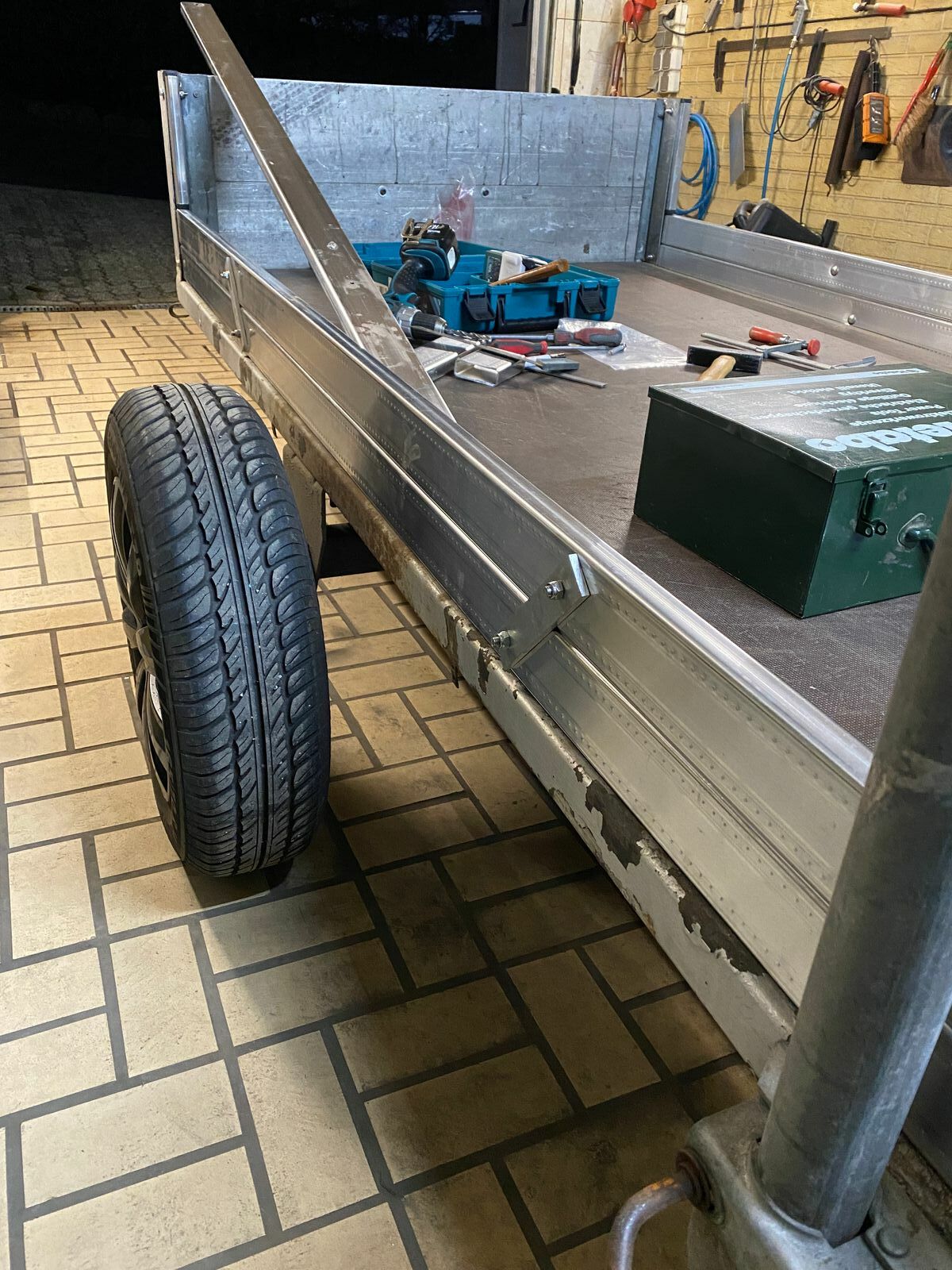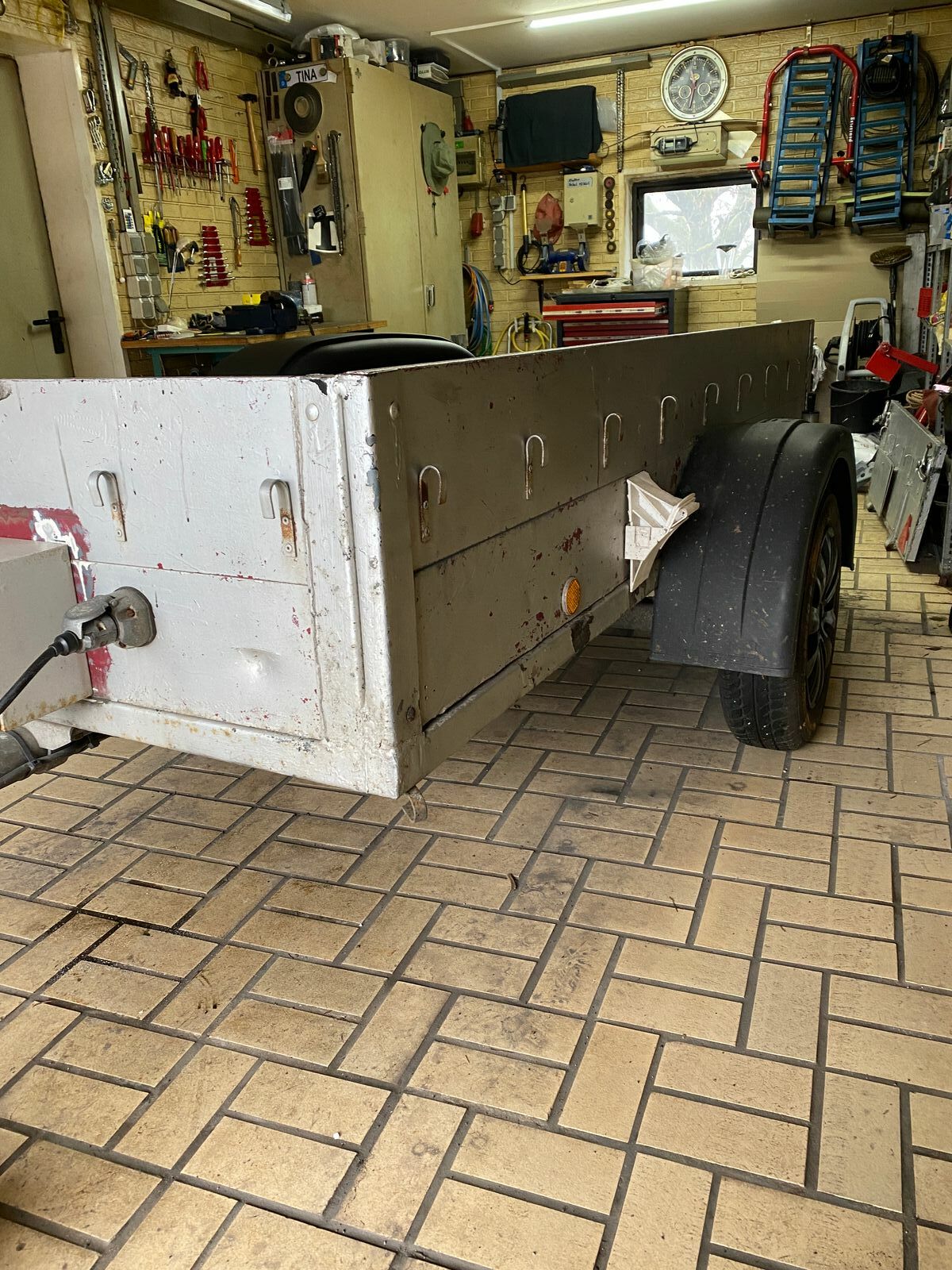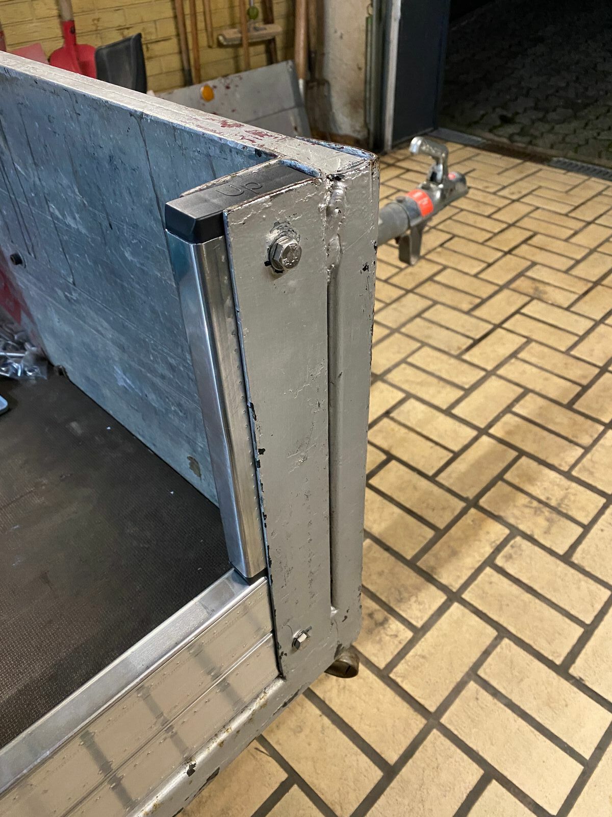 Hänger ein Eigenbau ist ( aber nicht von mir ), konnte ich die seitlichen Bracken gut entfernen, da sie in U-Profilen saßen. Ein Bekannter besorgte