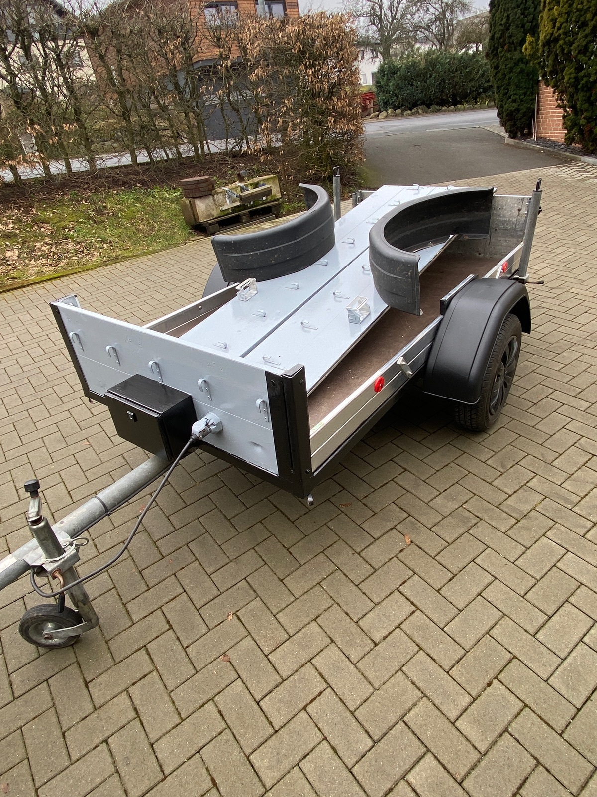 #76 Alles anzeigenGefühlt ist mit dem Anhänger schon der halbe Ort umgezogen. Hat vorne rechts noch ne Tür wo man die Mopeds noch mal nachjustieren kann. Neu 3.800€ hätte ich dafür nicht ausgegeben. Sieht halt aus wie ein Zwergponnyanhänger