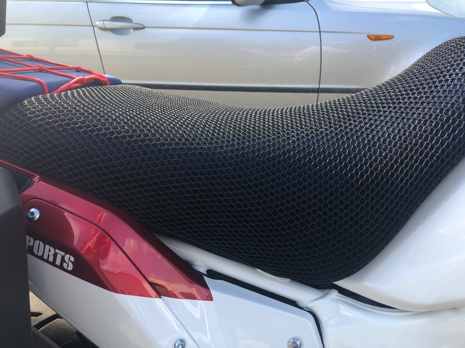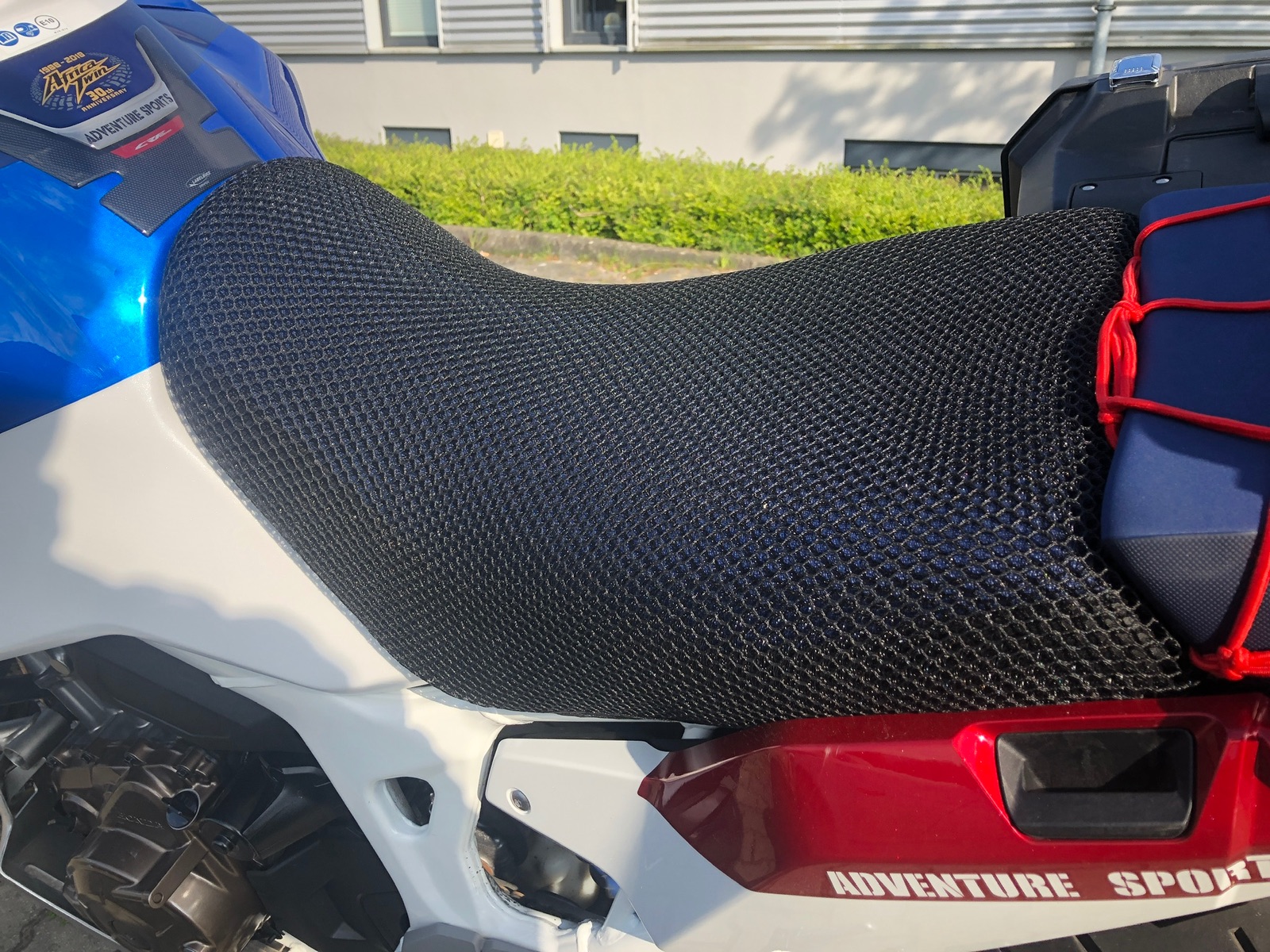 Hallo Yannik, dieses Mesh hab ich letztes Jahr auf Verdacht für kleines Geld aus der Türkei mitgebracht, da die Qualität offenbar gestimmt hat. Für die komplette Sitzbank war es etwas zu klein, und da ich längere Touren eh nie zu zweit fahre, ist das so ok für mich. habe das Mesh etwas unter die Sitzbank umgeschlagen, das geht ganz gut.![]()