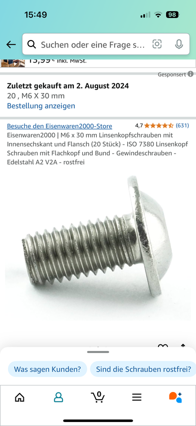 ...bin gerade am aufräumen und habe noch passende Schrauben 6x20 / 30 gefunden.