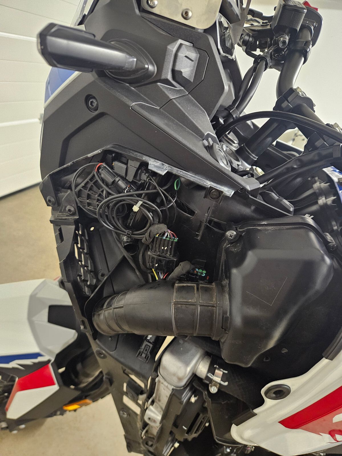 Schritt 5: Seitenverkleidung ab und das Kabel zurückziehen. Hat definitiv am längsten gedauert da ich den ver****ten Stecker nicht durch bekommen habe.