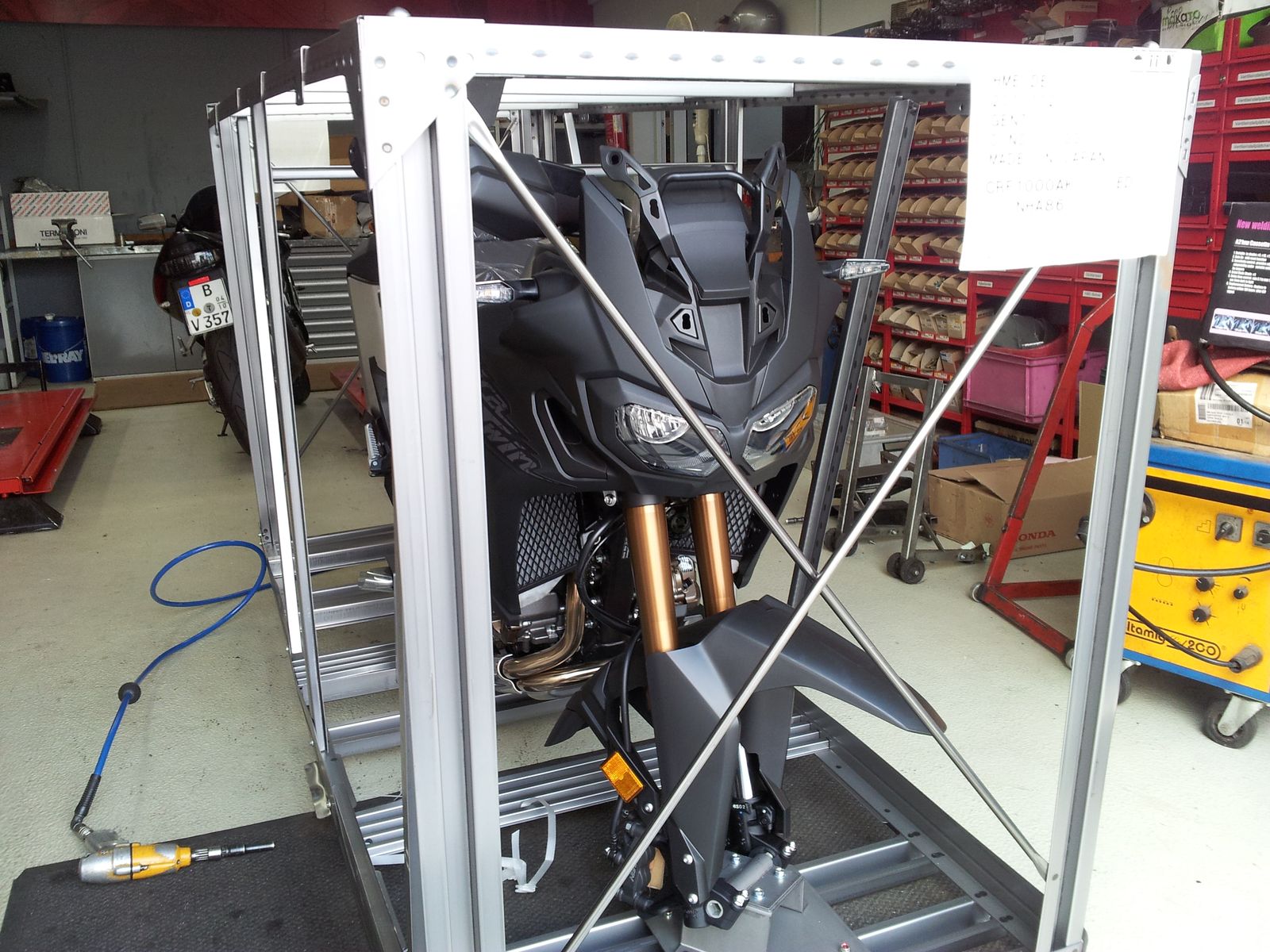 Ich habe davon 2 Stück. Eines kommt übers Hinterrad und eiens fummel ich ans Vorderrad. Zusätzlich steht das Vorderrad in einer Wippe. als weitere sicherung gegen umfallen spanne ich das ganze noch mal zur Seite hin ab. Bisher hat das hervorragend funktioniert. Das sich Gurte lösen oder ähnliches gabs noch nicht. Vorteil ist das die Ferderung gar nicht belastet ist.