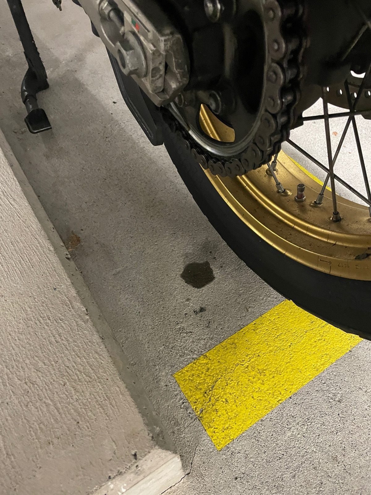 Beim letzten Reifenwechsel hat der Mechaniker offenbar übersehen, dass er den auf dem Kettenrad aufliegenden Schlauch des oneone-Ölers abgerissen hatte.