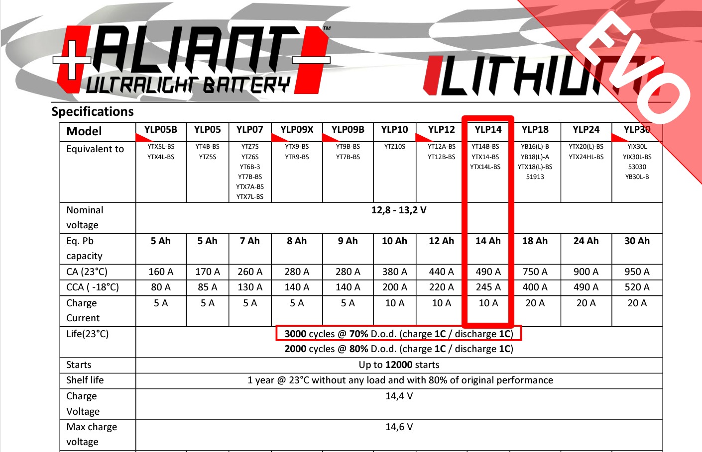 Die originale Li-Ion Batterie der Africa Twin (HY110) steht mit einer maximalen Ladespannung von 14,7V und einem maximalen Ladestrom von 35A.