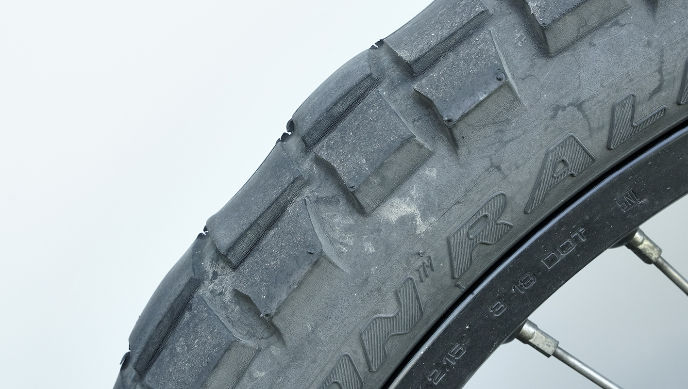 Der Pirelli Scorpion Rally STR hat mich immer begeistert, wenn er neu war. Aber ich finde, der altert schlecht, vor allem am Vorderrad. Ich habe da jetzt so um die 6000 drauf (bin bei den vergleichbaren Laufleistungen immer etwa im oberen Drittel angesiedelt), und die Sägezahnbildung ist doch enorm (siehe Bild). Da sind Unterschiede um die 3mm. Der hintere Reifen ist ausgezeichnet.