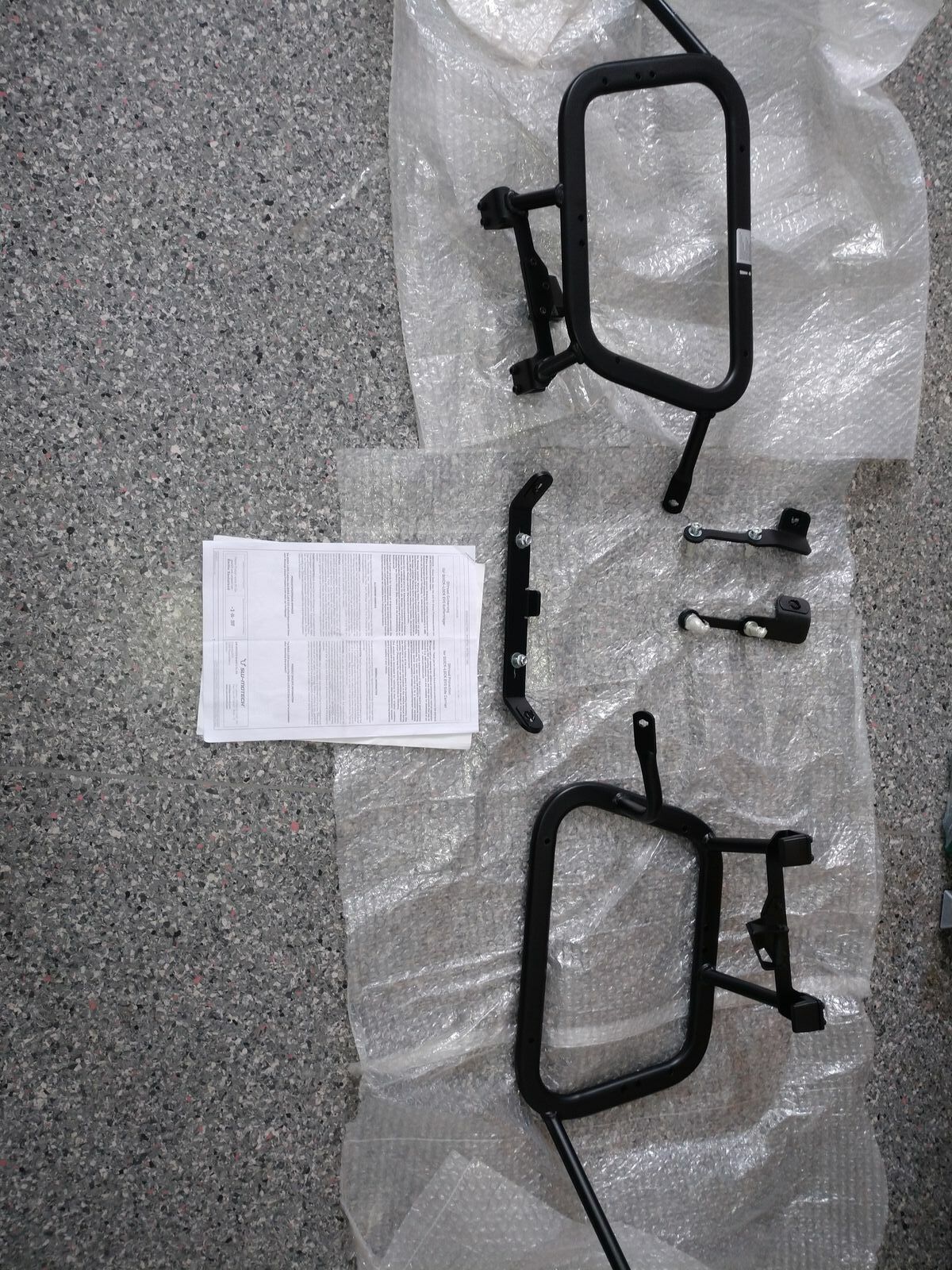Lieferumfang wie auf dem Bild. Inkl. Offroad-Sicherung aber ohne Adapter für Koffer und ohne die 4 Quicklook Schrauben. Eine Festmontage war geplant. Neupreis 270.- Montageanleitung vorhanden.