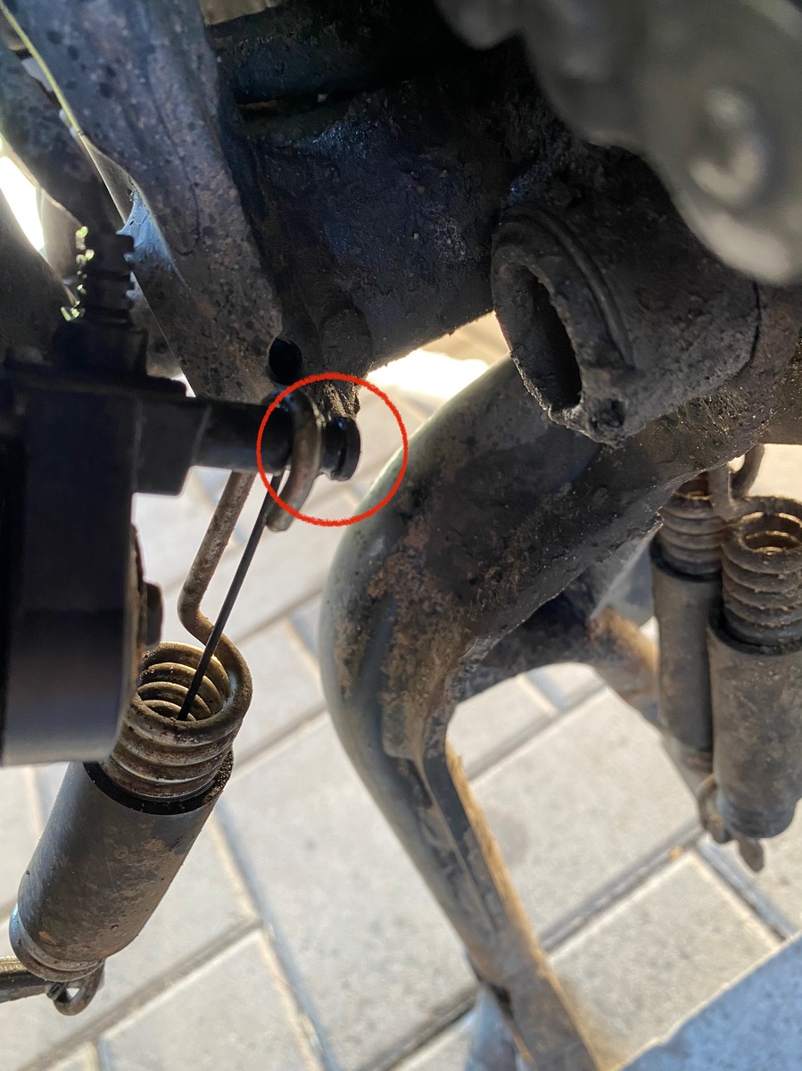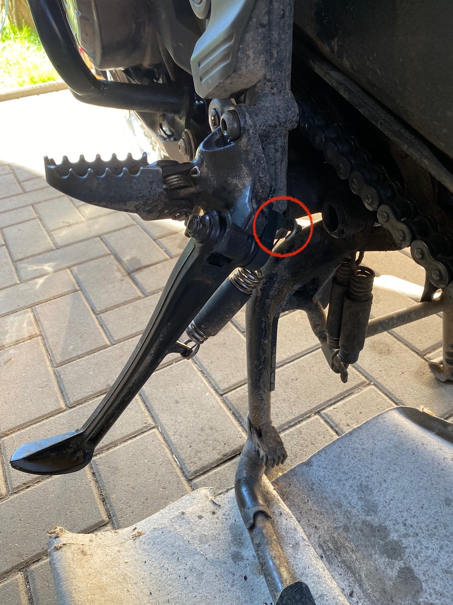 Muss an dem Seitenständer für die Rückholfeder ne Sicherungsscheibe oder sowas sein, damit die nicht von dem PIN runterspringen kann?