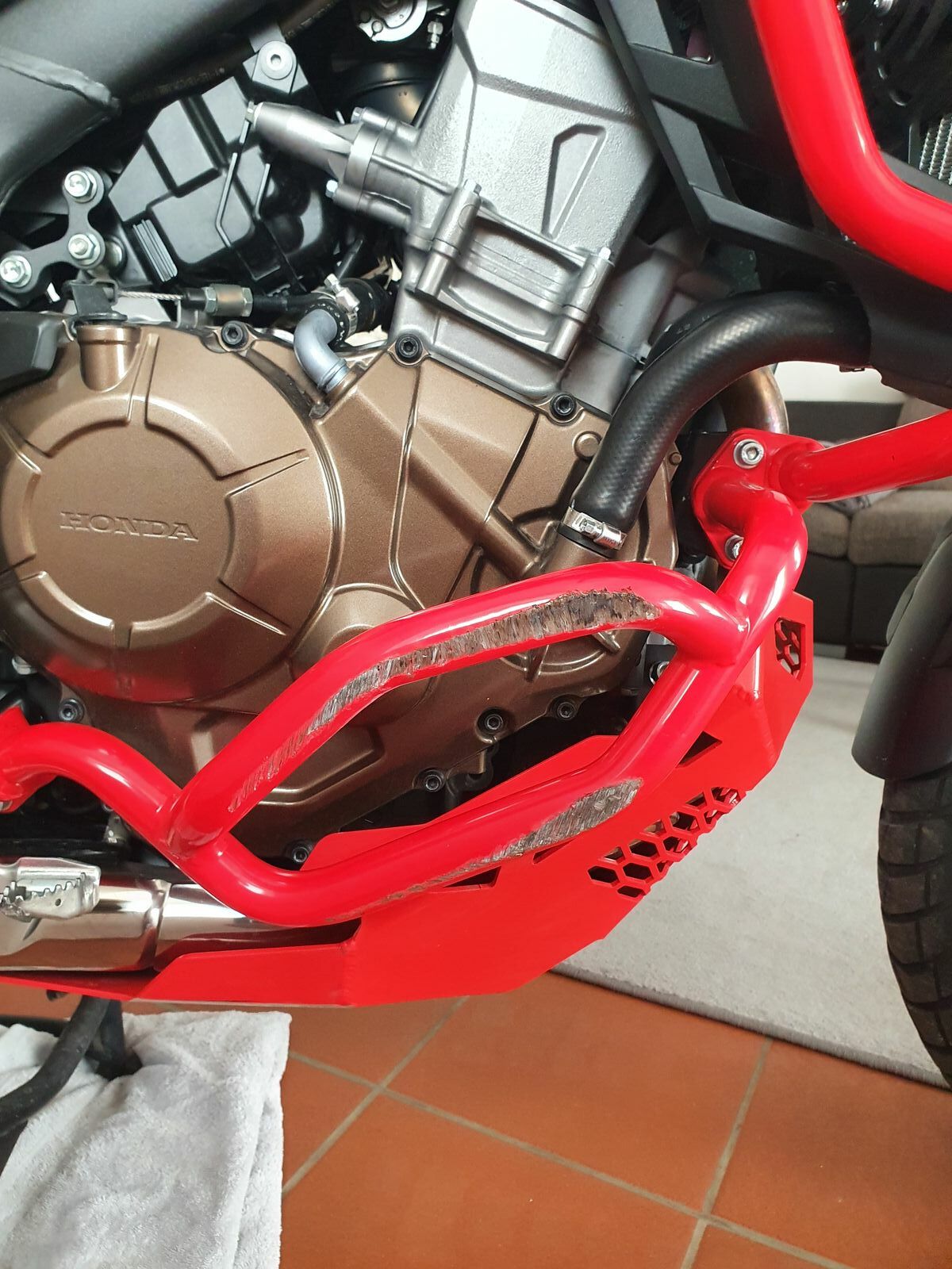 Ich habe mich vorgestern unglücklicherweise mit meiner Africa Twin auf die Schn**** gelegt.