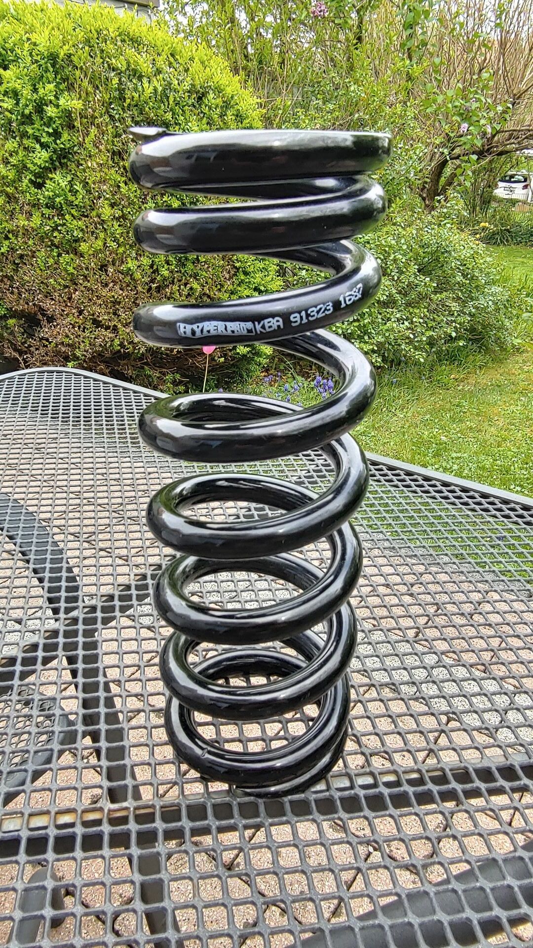 Es handelt sich bei dem Touratech-Set um Federn von Hyperpro. Das Set für vorne + hinten hatte ich bei Zweirad Norton (Touratech Mitte) gekauft und verbauen lassen (Rechnung vorhanden). Inzwischen habe ich doch etwas mehr Geld in die Hand genommen und das Fahrwerk komplett individuell auf mich abstimmen lassen. Die Federn waren für rund 5000km verbaut und sind in einem sehr guten Zustand.