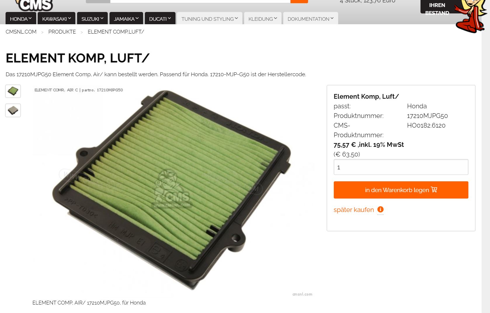 hat schon Jemand Luftfilter bei CMSL gekauft?