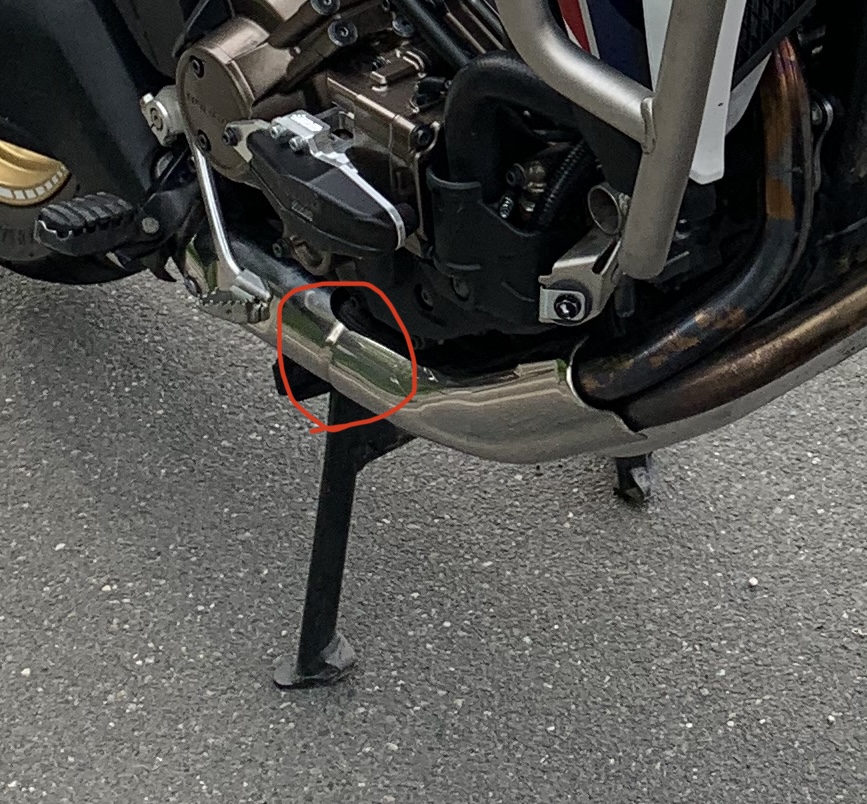 Ich habe an meiner normalen AT den originalen Honda Dekor Sturzbügel der Adventure Sports (AS) verbaut. Die Schraubpunkte für den großen Motorschutz der AS am unteren Ende des Sturzbügels liegen frei.