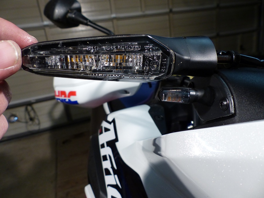Trotz allem ein Lob an Honda, denn selbst bei diesem extremen Schrumpfverhaltens ist die Funktion der Blinker einwandfrei, siehe Bild unten.