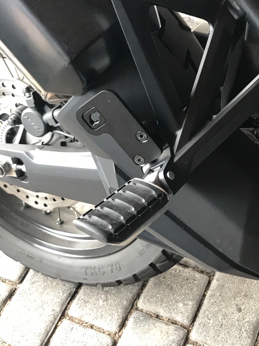 Die Original Fussrasten hinten hingegen haben wir recht zügig gegen die Honda Komfortfussrasten getauscht. Die originalen hatten keinen Grip und haben an den Fußsohlen schnell Schmerzen verursacht.
