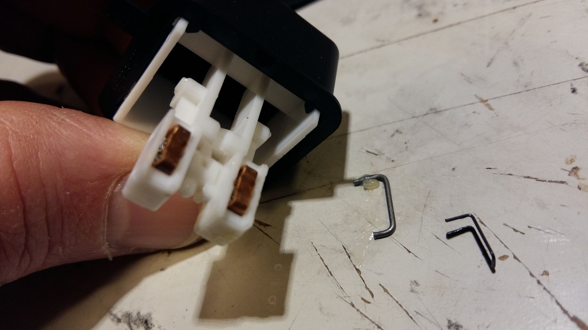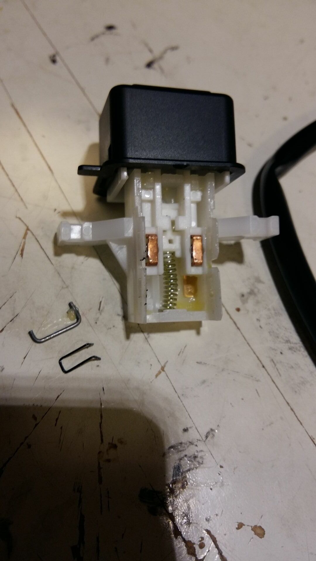Nimmt den Schalterkopf vom Unterteil ab, dann entfernt man die beiden "Metallbügel",