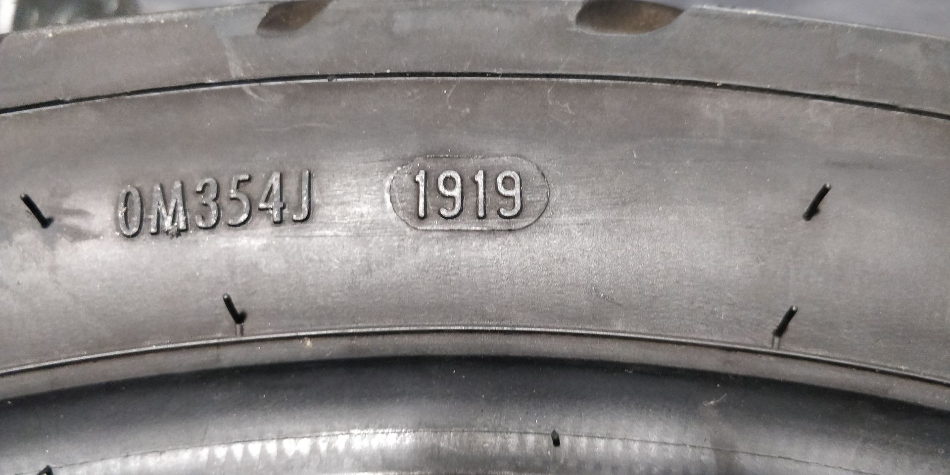 Reifen-Produktion 1919. Profil rundum mindestens 6mm, müsste ich bei Bedarf nachmessen. Reifen sehen im Augenmaß Recht rund aus, vor allem der HR sieht auf dem Foto schlechter aus.