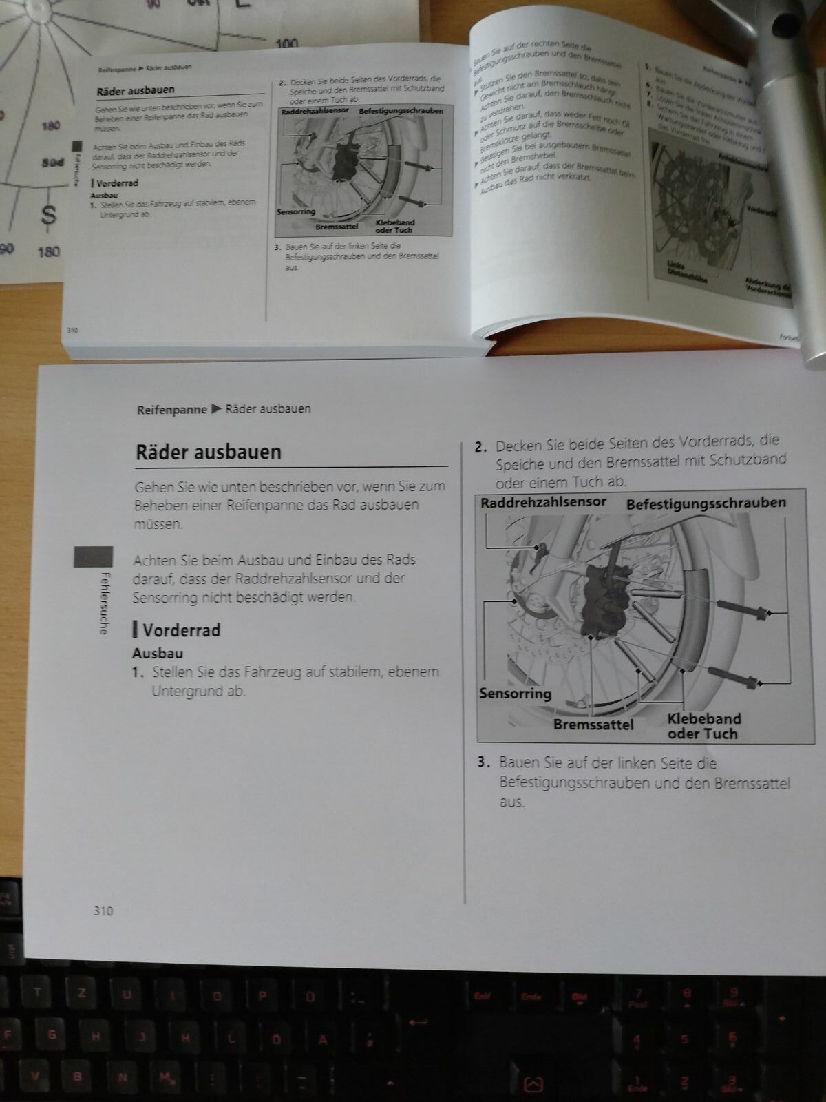 wegenmeiner schlechten Augen habe ich mir das deutsche Fahrerhandbuch kostenlos im Netz als PDF runter geladen und kann mir jetzt alles am PC mit Monstermonitor ansehen. Wichtiges, wie den Radausbau / einbau, habe ich mir für die Garage ausgedruckt.
