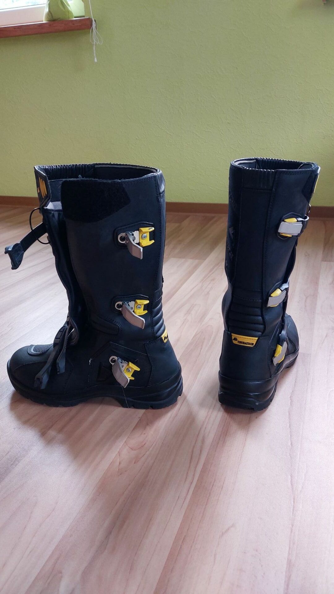 Da ich zukünftig gesundheitsbedingt leider auf Touren mit Offroad-Anteil verzichten muss, verkaufe ich meine Touratech Destino Touring Gr. 44 Motorradstiefel.