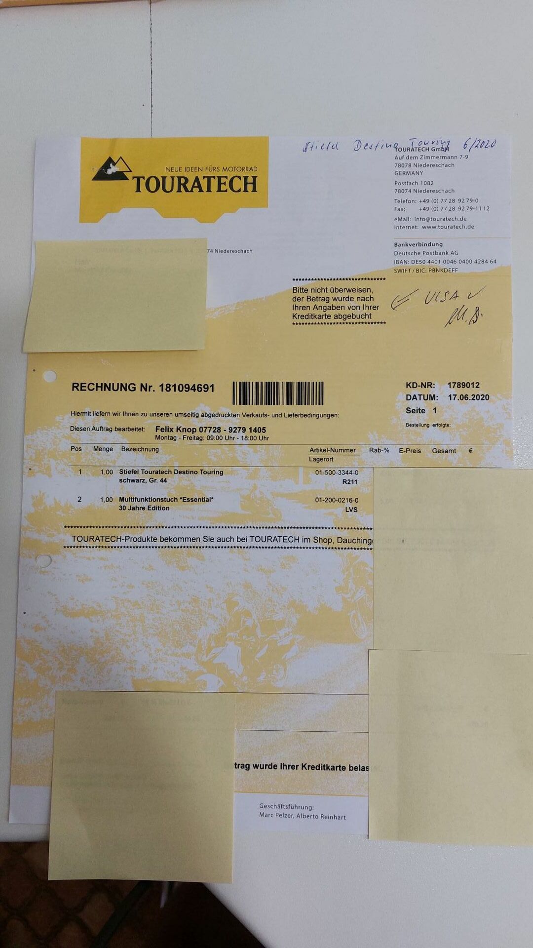 Größe laut Kopie der Rechnung (siehe Bild) = 44. Bei den Daytona Stiefeln habe ich ebenfalls 44 - beide passen perfekt. Die Größenangabe auf den Stiefeln selbst ist mit EUR 46/US12 angegeben - das ist Unsinn - es ist bekannt, dass der Hersteller Fo..., der die Steifel für TT produziert, seltsame Vorstellungen von Schuhgrößen hat.