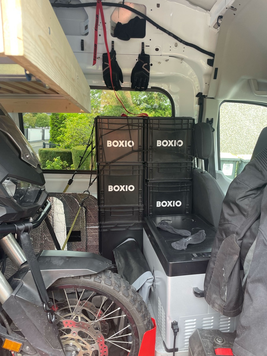 Das Thema Ladung wird erst in den nächsten Ausbaustufen verbessert. Es wird ein Schranksystem und Zurrschienen im Fahrzeugboden geben. Man sieht hier deutlich, wie die diagonale Abspannung jeglichen Stauraum vernichtet. Das muss anders werden.