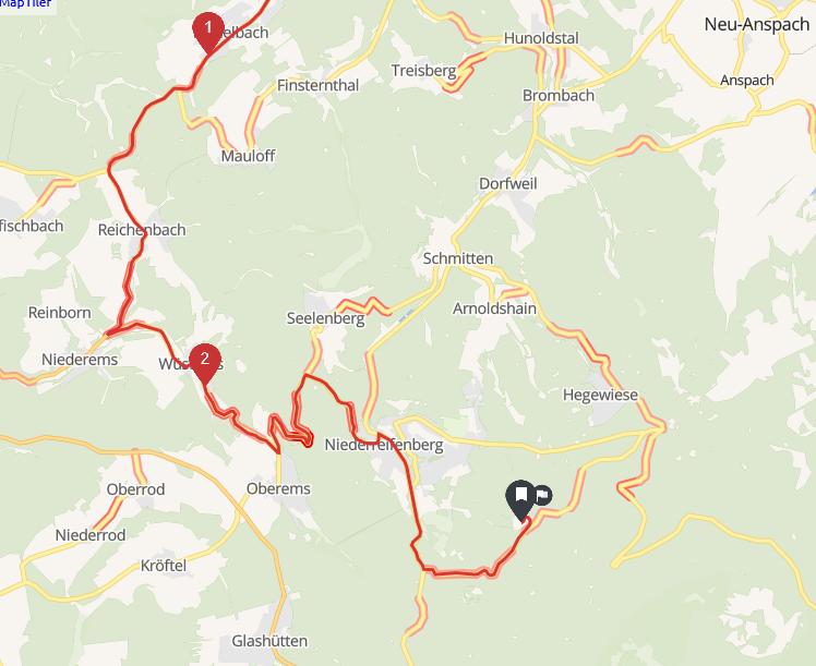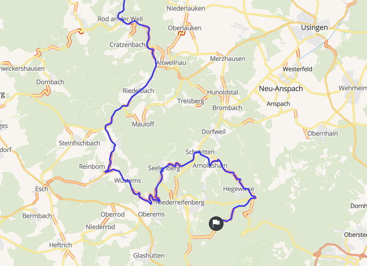 Hab mir eine Route berechnen lassen von mir bis zum Feldberg im Taunus. Da es ja in meinem Revier liegt, und ich mich auch dort etwas auskenne,