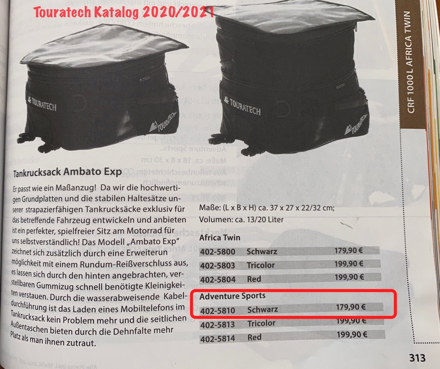Touratech Tankrucksack SD06 AT Adventure Sports