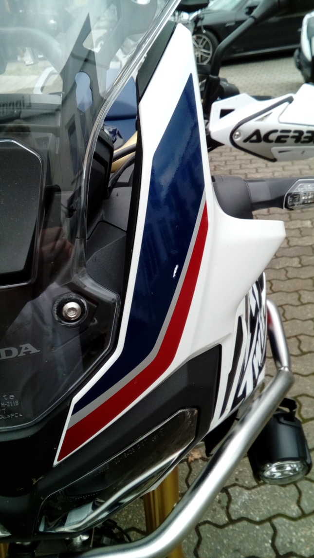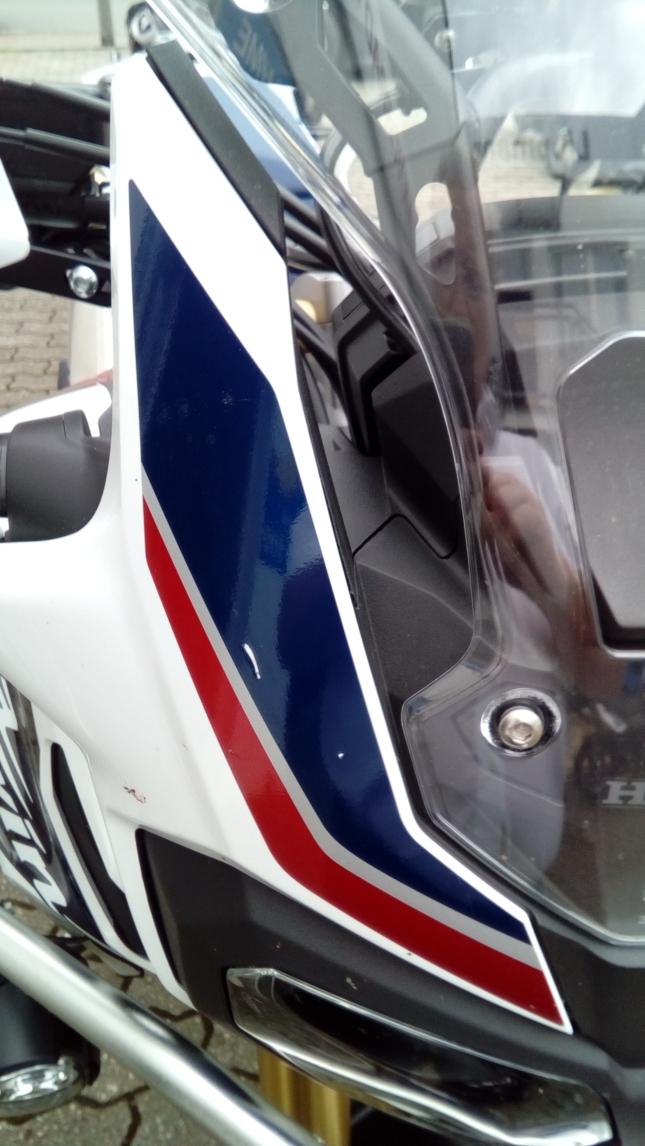Sie liegt an 2 Stellen an der Frontmaske auf, trotz Verwendung der 4 mitgelieferten Gummischeiben unter der Scheibe (also Montage nach Anweisung) und hinterläßt Beschädigungen der Folierung.