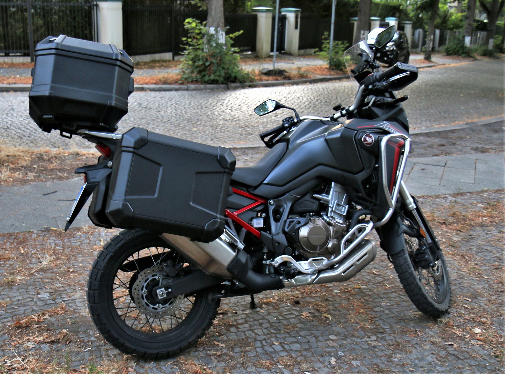 Verkaufe schweren Herzens meine schwarze Africa Twin inkl. Quickshifter, Koffern und gr. Topcase (orig. Honda), höherer Scheibe, Hauptständer ... . Es ist die Version mit Gangschaltung, kein DCT. Bis auf die Handyhalterunten alles so wie auf den Bildern. Sie hat jetzt 14.050 km, wurde astrein eingefahren, der Motor ist sehr sparsam trotz zügiger Fahrweise.