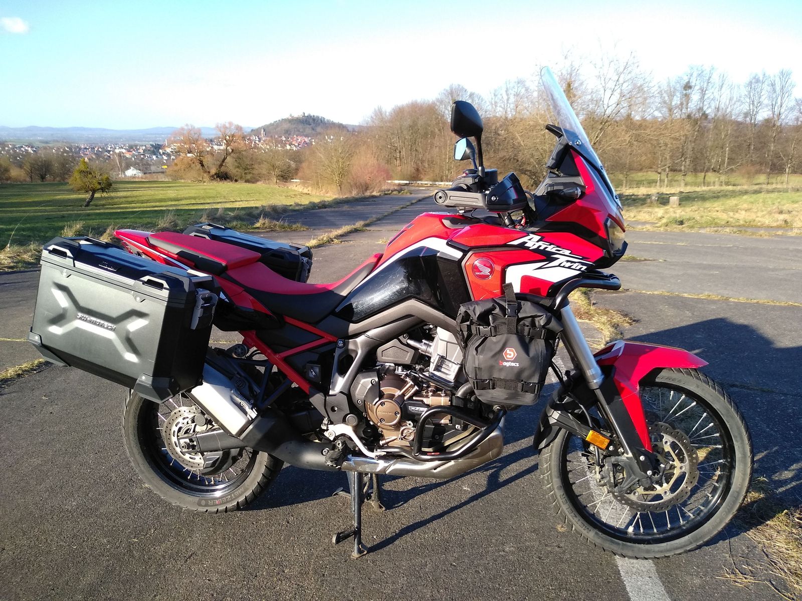 Mit dieser reisetauglichen, top ausgestatteten und tadellos funktionierenden Africa Twin kann sofort auf die nächste große Tour gestartet werden!