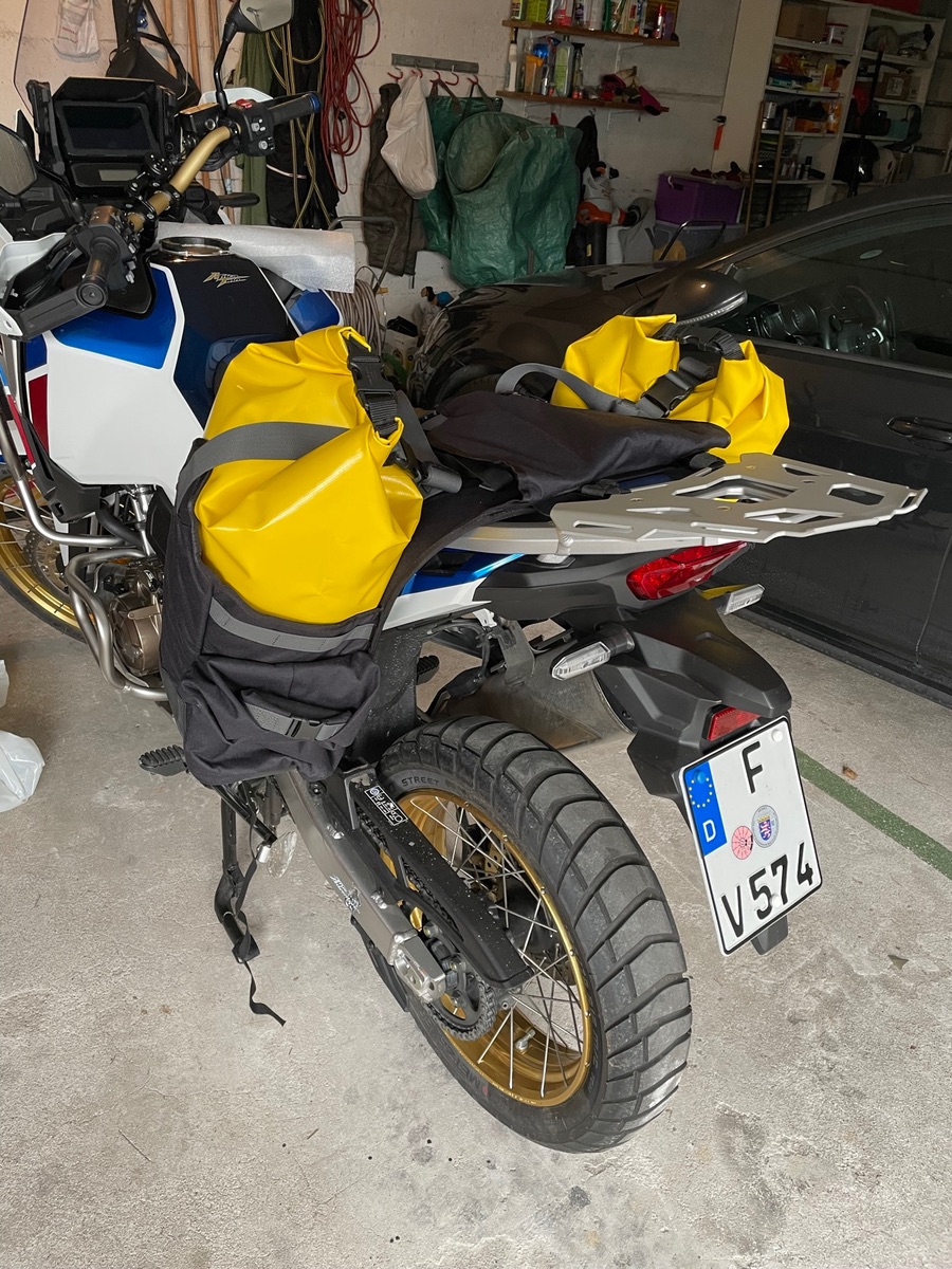 #7 Alles anzeigenHabe ich von Touratech und mit dem 40 l Ortlieb Duffle die perfekte Größe für 1Woche.Wenns mal wieder länger dauert passt auf die Gepäckbrücke noch eine 80 l Rolle oder Topcase oder was auch immer.