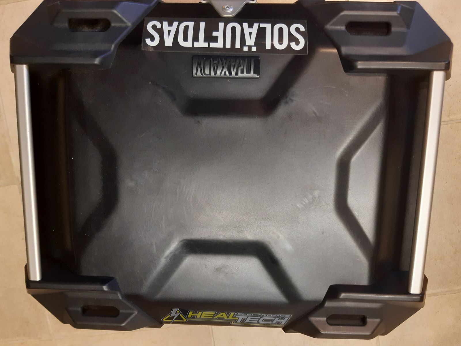 Ich verkaufe hier mein gebrauchtes "ION" Kofferset mit dem "ADV" Topcase in der Farbe schwarz. Die Koffer haben ein Volumen von 45 l bzw. 37 l und sind mit den wasserdichten Innentaschen und Tragegriffen (Klettverschluss) ausgestattet. Zum Topcase gehört die Quicklock Adapterplatte und noch ein Innennetz im Deckel. Die Aufkleber können selbstverständlich entfernt werden.