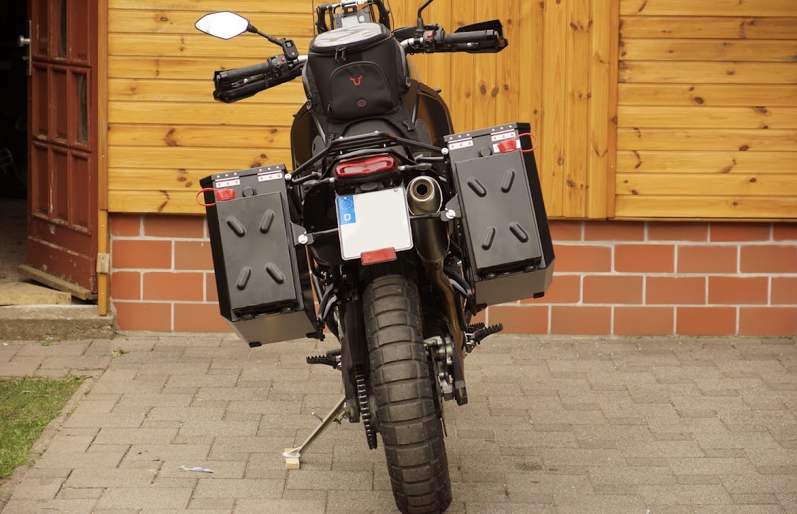 Weder Topcase noch Seitenkoffer verschönern das Bike. Beides lässt sich bei nicht Gebrauch abnehmen. Warum dann nicht gleich was kaufen, was das nötige Volumen hat?