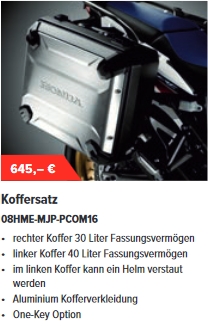 Für Koffer und Topcase bei der SD04 wurden anfangs (so stand es auf der Messe in Leipzig) 2000€ verlangt.