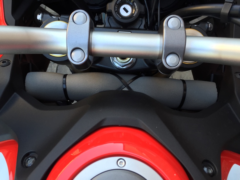 Da haste dir aber viel Mühe gemacht. Meine Lösung ist viel simpler: die Rohrummanntelung ist ja der Länge nach geschnitten. Ich habe einfach eine Schnittkannte unter die Kunststoffabdeckung geklemmt. Der Fahrtwind drückt dann die andere Kante gegen die Verkleidung. Hält ohne Kabelbinder schon 5000km.