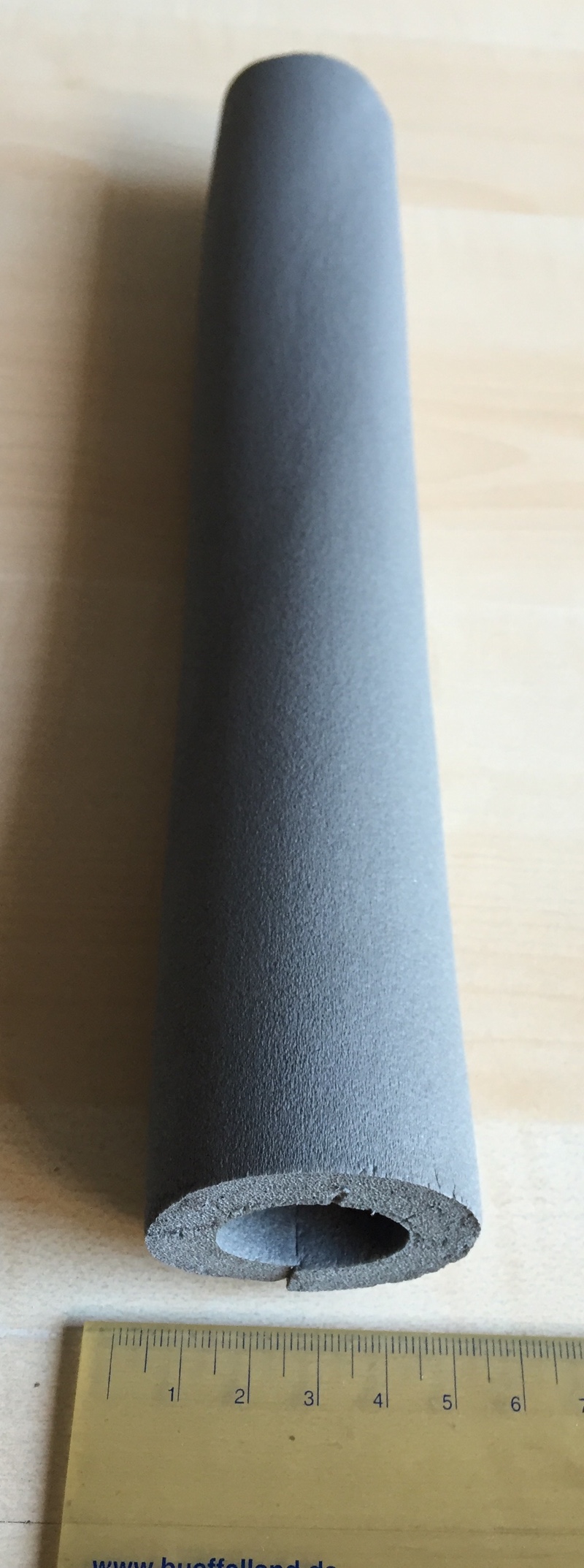 Dann ab in den Baumarkt und nach ner Rohrisolierung geschaut. Die gab es in zwei verschiedenen Festigkeiten, ich habe die weiche genommen, damit der Lenkereinschlag auch einwandfrei funktioniert: