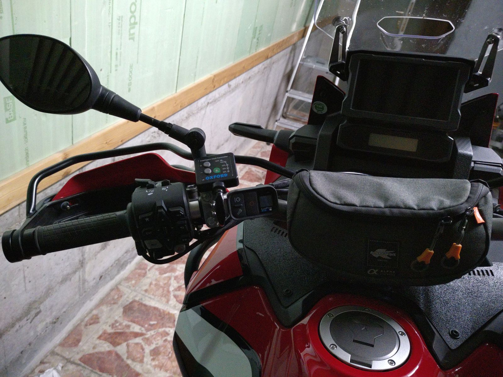 Ich habe mir diese Velotasche fürs iPhone gekauft. Die Tasche hat einen wasserdichten Reissverschluss und macht einen ordentlichen Eindruck. Sie ist auch nicht so gross und passt perfekt an den Afrika Twin Lenker. Sie wird mit Klettverschlüssen fest gemacht. Ich finde es ist eine gute Alternative zum vorhandenen SP connect Halter, wo das Handy dem Wetter und Wind voll ausgesetzt ist. Mit CarPlay muss es ja gar nicht im Sichtfeld des Fahrers liegen. So ist es gut geschützt und wird auch nicht so dermassen durch vibriert.