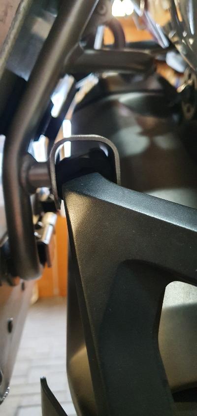 Mein Kumpel gab mir den Tipp, dass es da gerade günstige Original Honda Alukoffer bei Ebay-Kleinanzeigen gibt. Anruf - kurze Recherche - 2. Kumpel holt die Boxen für mich nach kurzer Sichtprüfung in HH ab. Kofferträger? TT winkt ab. Honda-Händler? Gibts nicht mehr zu kaufen. Ach so, dass war der Haken. Gibts Unterschiede beim Träger zwischen AT und ATAS? Nein, müssten die gleichen sein. Dann wieder bei Ebay-K. gefahndet und fündig geworden: Honda Original Kit Pannier Stay Trägersystem Herstellernummer: 08L83-MKK-D00. Beim Anbau ist mir jedoch aufgefallen, dass der Träger nicht genau passt. Die untere, vordere U-Schiene liegt nicht auf dem Gummischuh, der auf die Halterung, an der auch die Soziusrasten befestigt sind, geschoben wird, auf. Es ist ca. 1cm Zwischenraum. Einen Fehler beim Anbau schließe ich aus, weil der Träger oben in die Originalaufnahmen eingehängt wird und der Träger wegen des Auspuffs gar nicht tiefer angebracht sein darf. Jetzt meine Frage: Weiß hier jemand, ob es vlt. doch verschiedene Träger für normale AT und AS gibt? Ist das Allgemeinwissen? Ich habs hier nirgendwo gefunden. Hat jemand schon das gleiche Problem gehabt und hat ein Distanzstück verbaut? Ich versuche hier mal ein paar Bilder einzustellen.