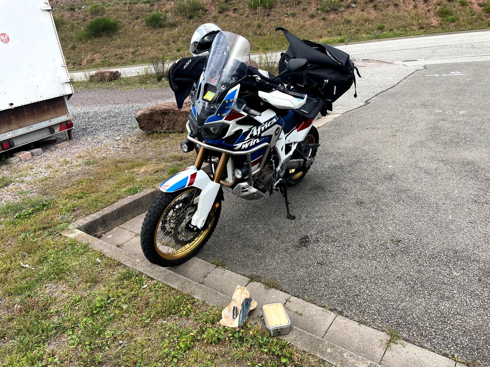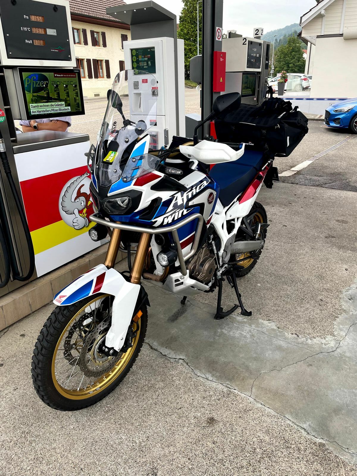 Am Sturzbügel sind die Halter für die Zusatzbeleuchtung schon dran.