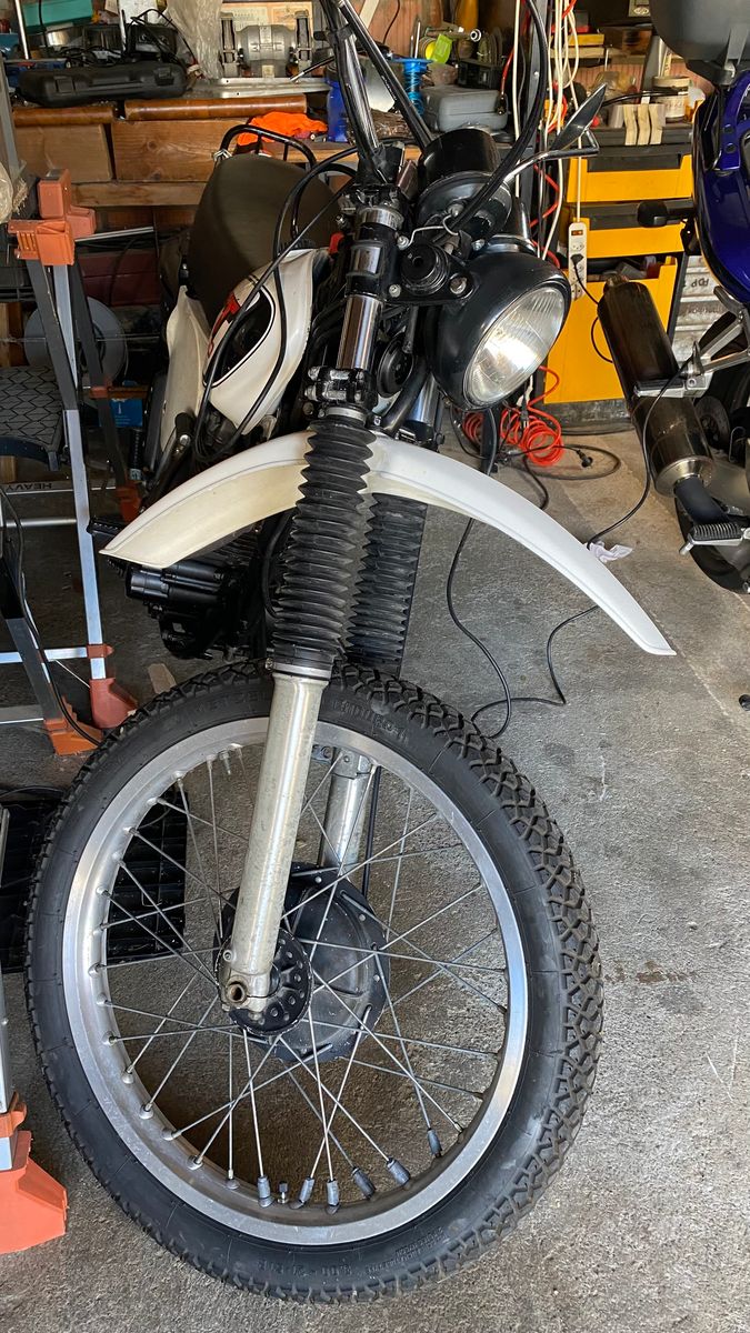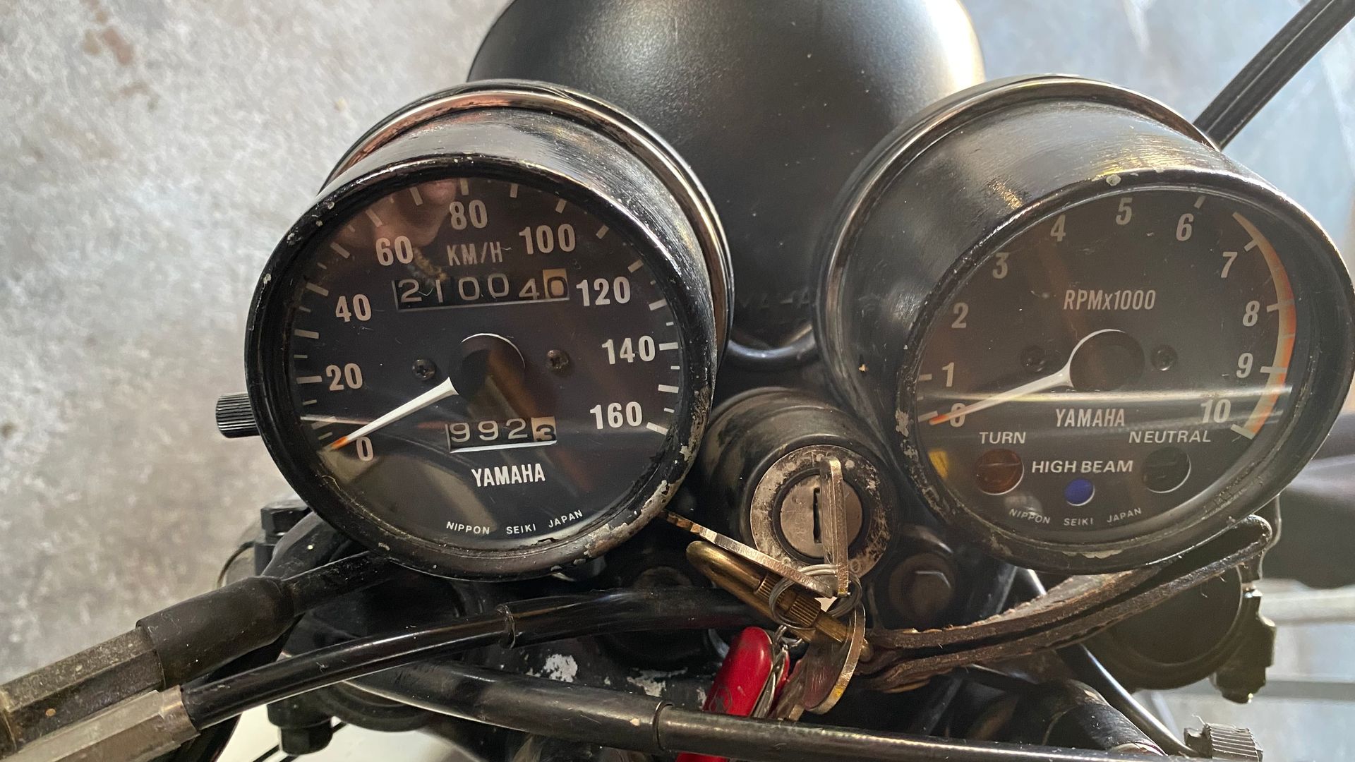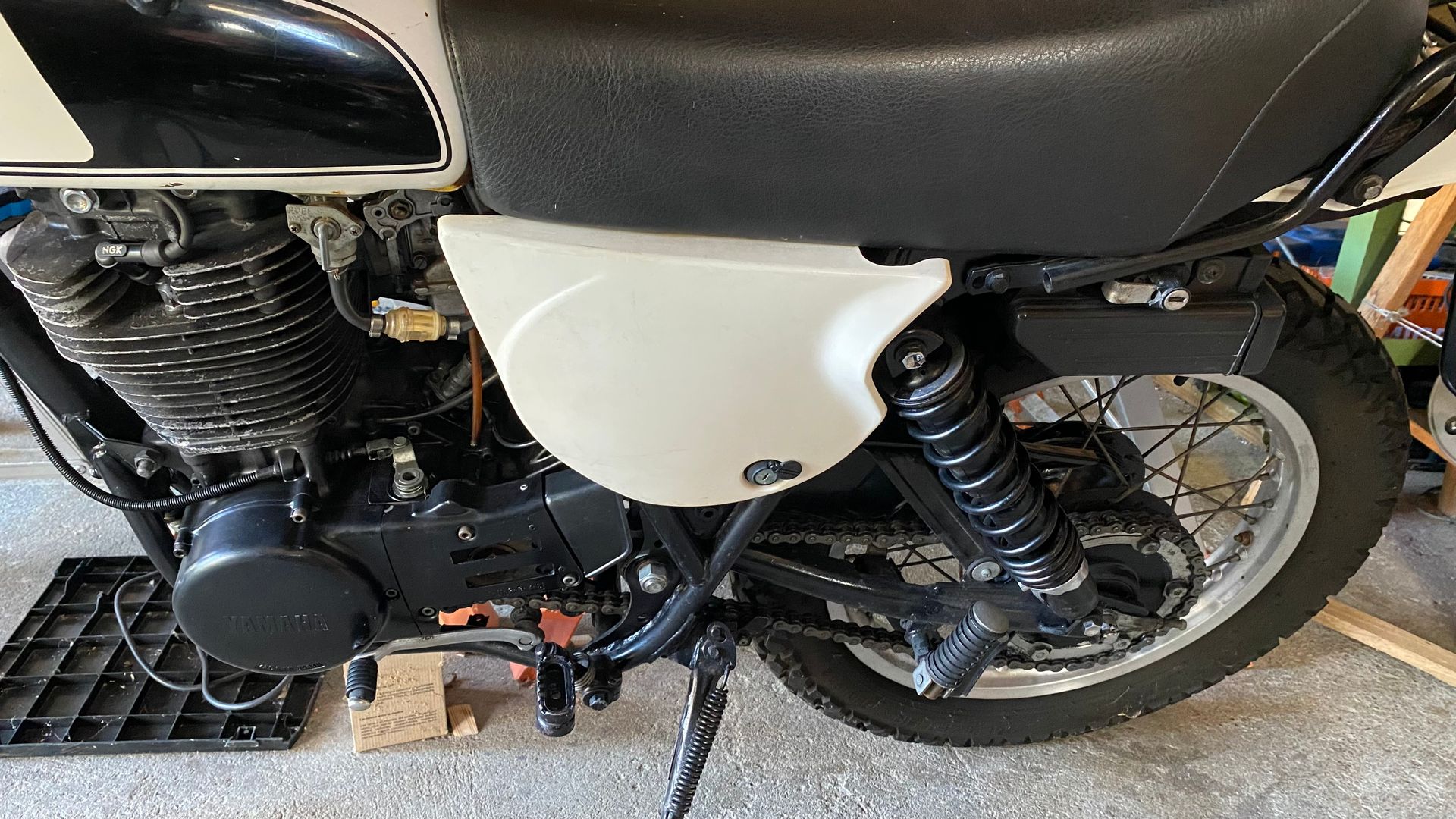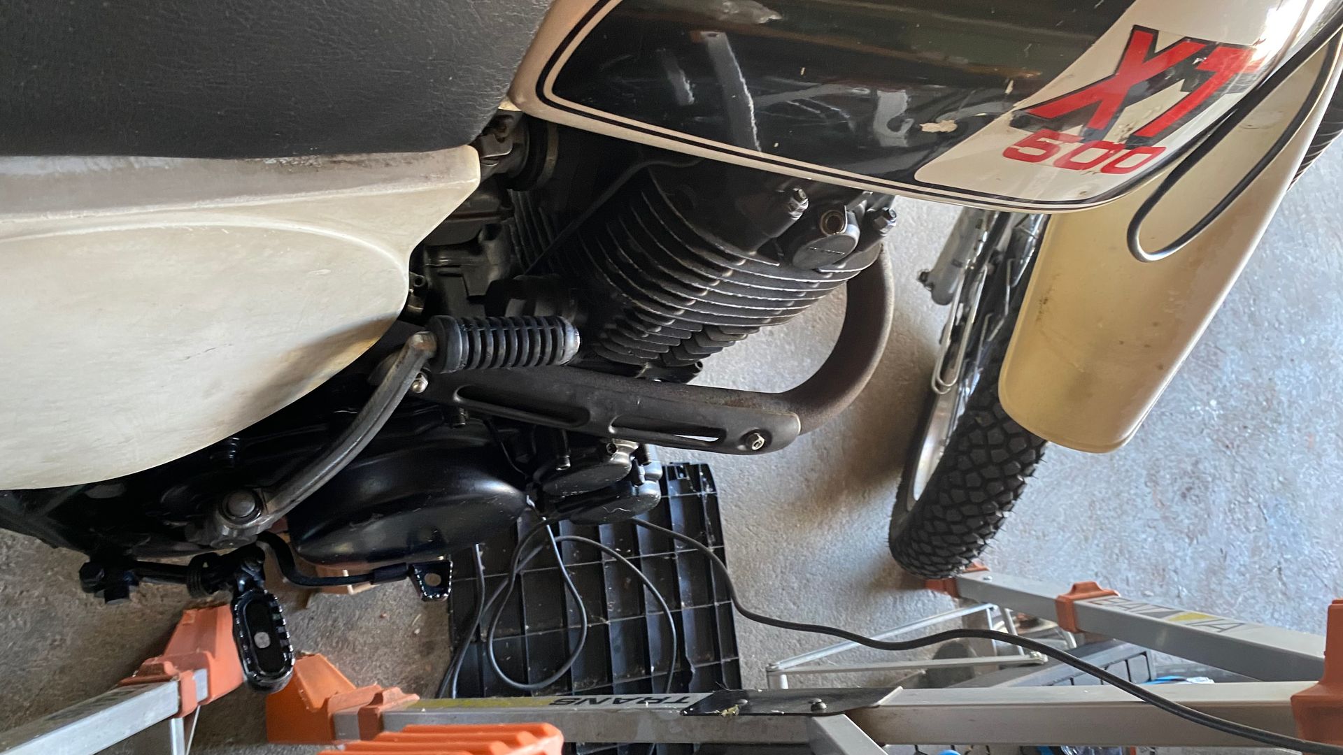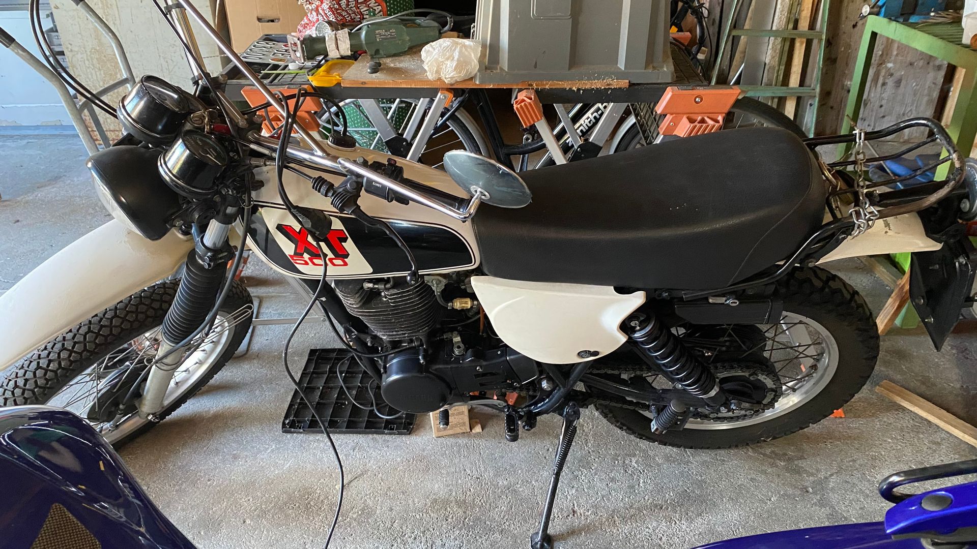 Aber da stand noch was anderes: eine XT500 im unverbasteltem Originalzustand. Er hat diese 1977 gekauft und ist (wie bei der SLR) der Erstbesitzer. Sie hat 21'000km und ja, das ist die effektive Laufleistung. Er hat sie in den letzten Jahren immer noch ein paarmal bewegt, hat also keine Standschäden. An sich bin ich ja nicht der Sammler, aber sie geht mir nicht aus dem Kopf.